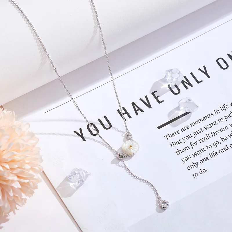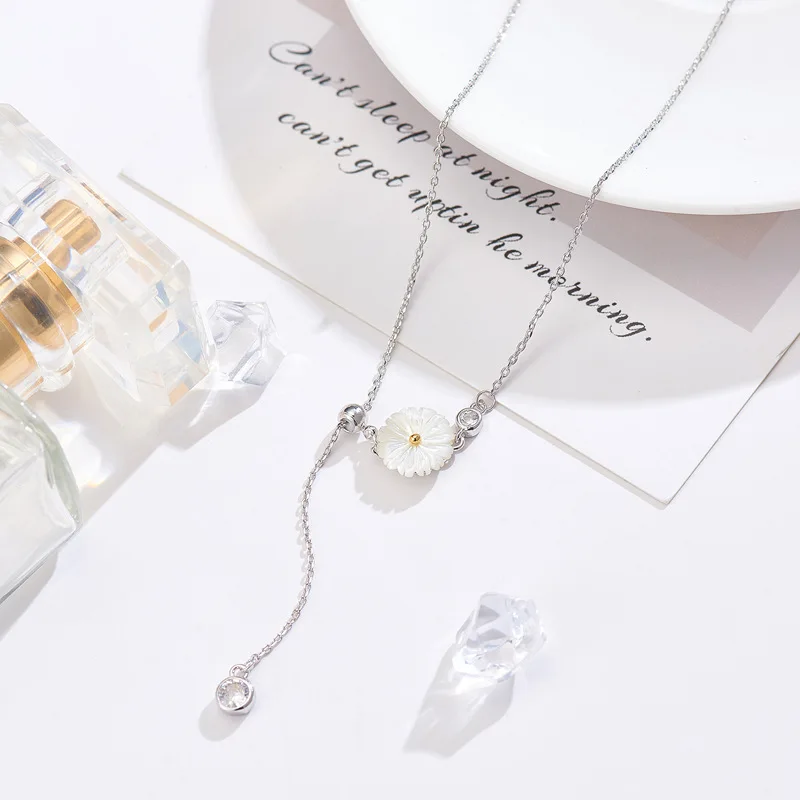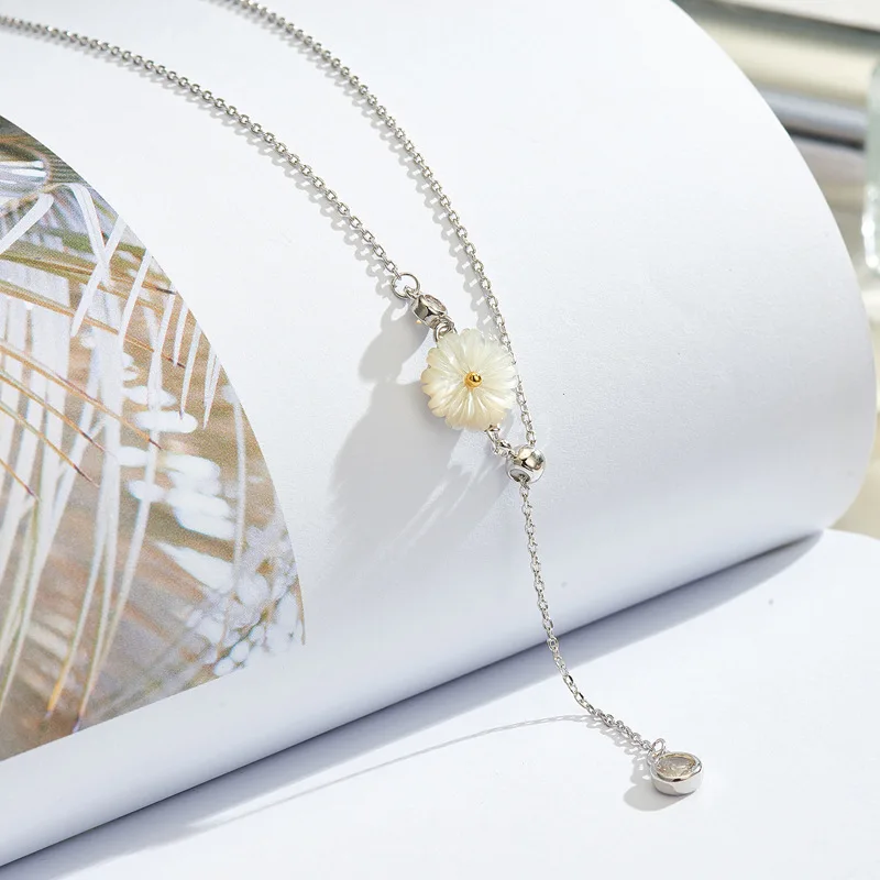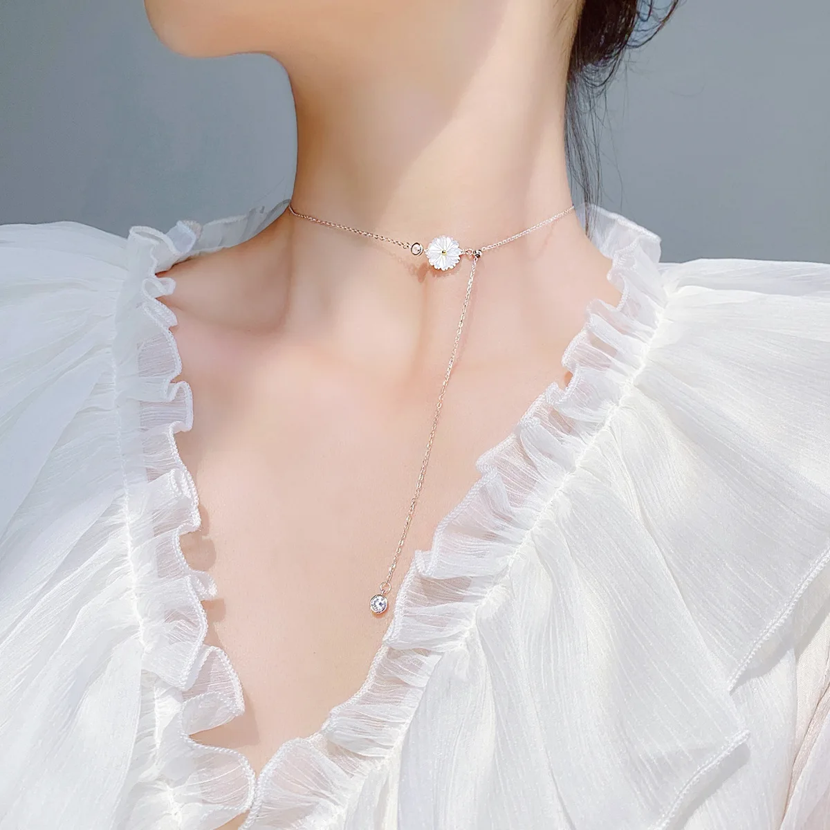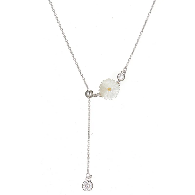 victoria’s vogue New 925 Sterling Silver Zircon Chrysanthemum Necklaces Pendant Fashion Sterling Silver Jewelry Statement for Women Bijoux