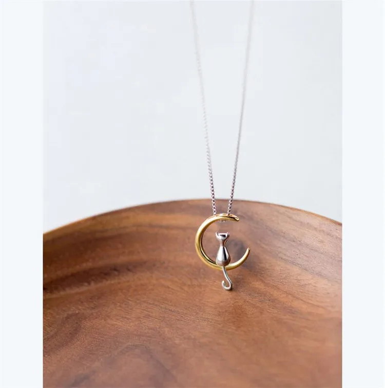 Victoria’s Vogue New Animal 925 Sterling Silver Jewelry Fashion Cute Cat Crescent Moon High-Quality Personality Pendant Necklaces