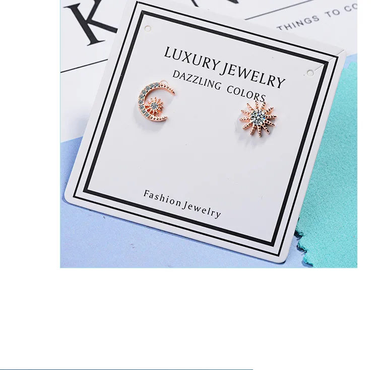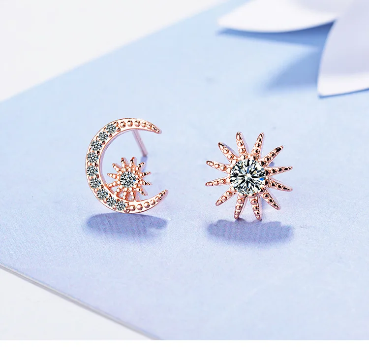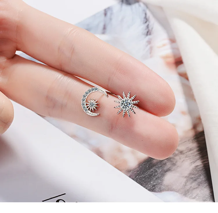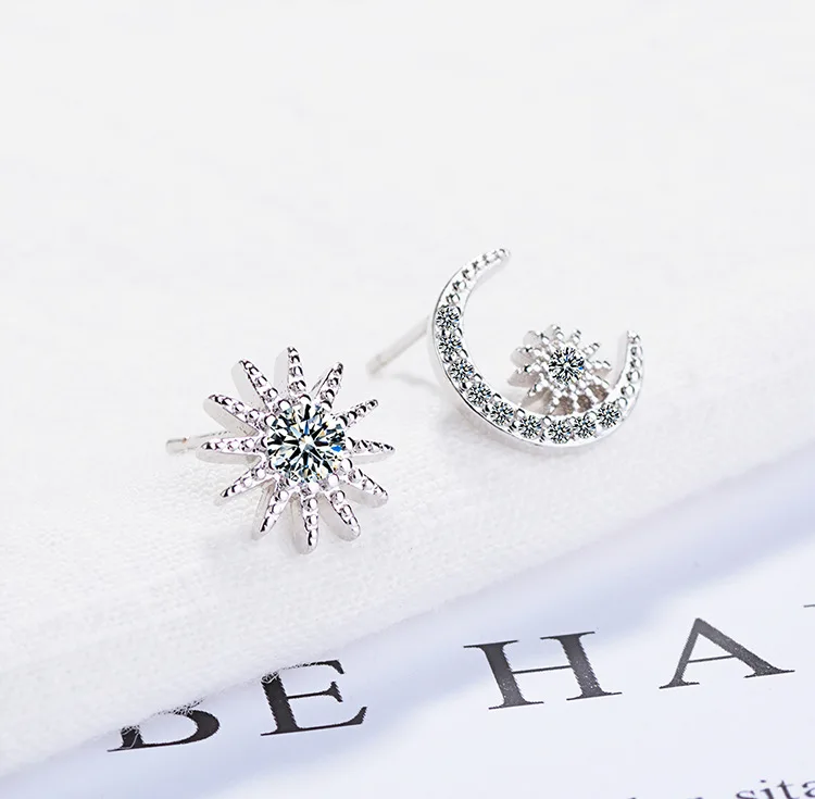 Victoria’s Vogue New Arrival Asymmetry Wild Fashion 925 Sterling Silver Jewelry Star And Moon Crystal Two Colors Exquisite Stud Earrings
