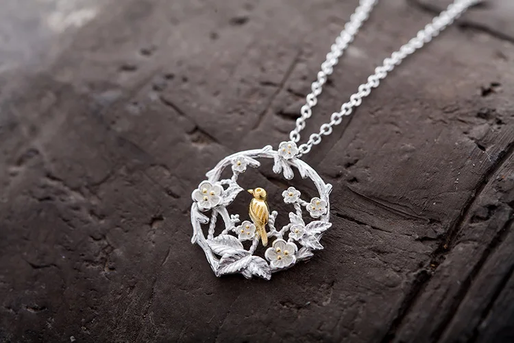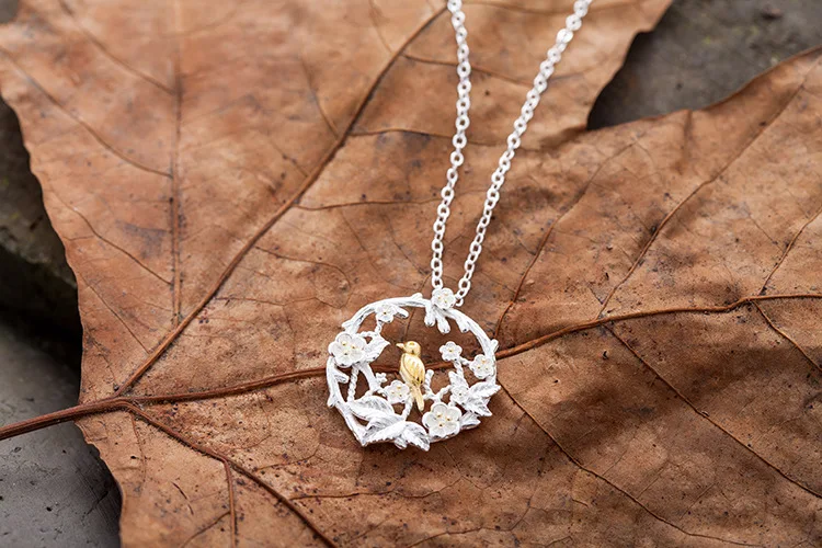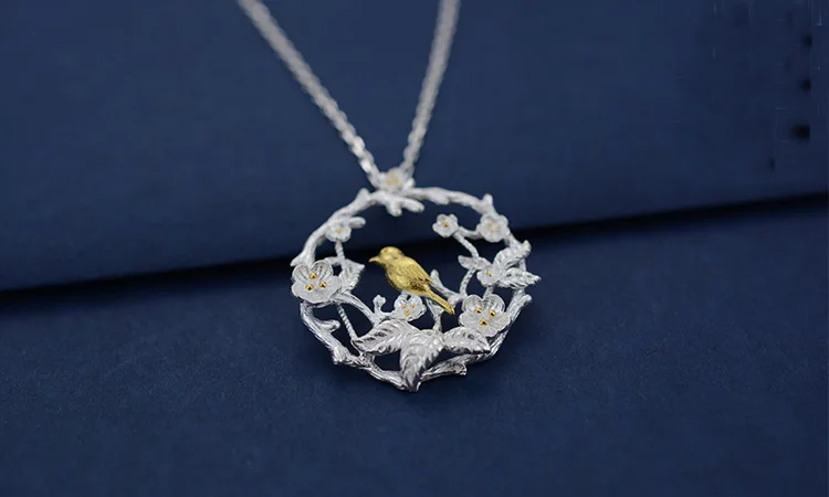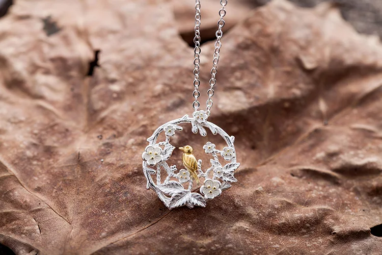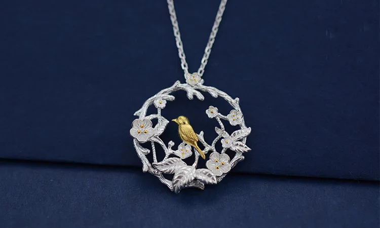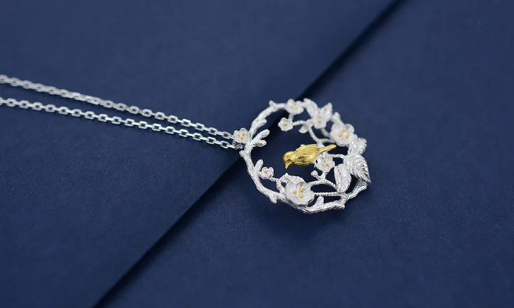 Victoria’s Vogue New Arrival Creative Beautiful Exquisite 925 Sterling Silver Jewelry Plum Birds Branch Clavicle Chain Pendant Necklaces