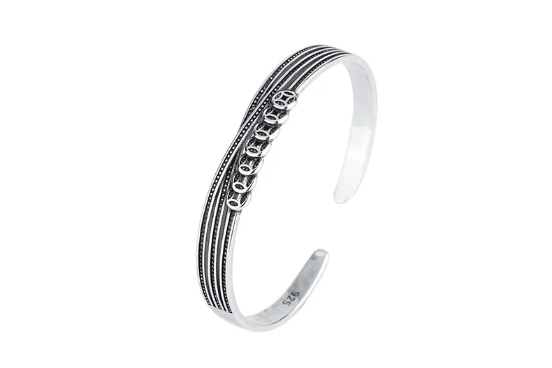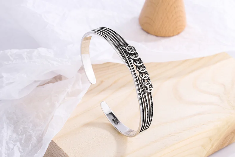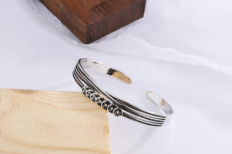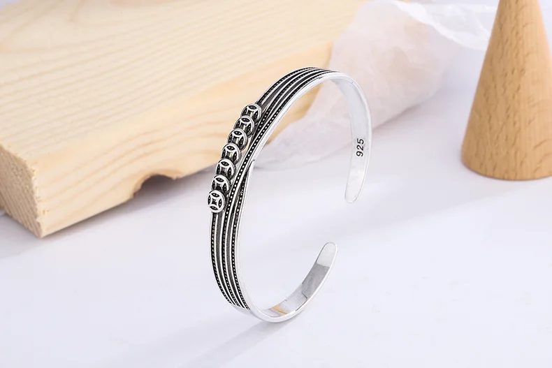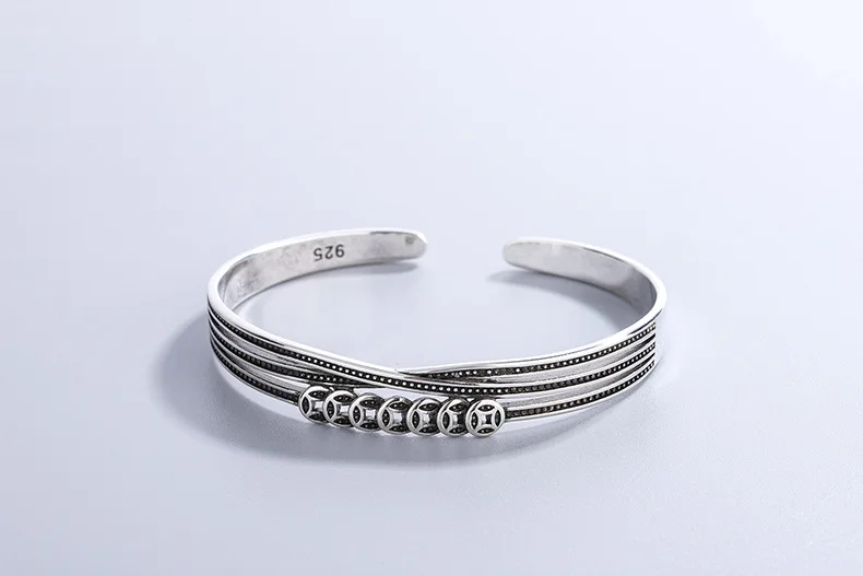victoria’s vogue New Arrival Creative Lucky Transfer Coin Bracelets 925 Sterling Silver Jewelry Retro Woven Line Money Opening Bangles