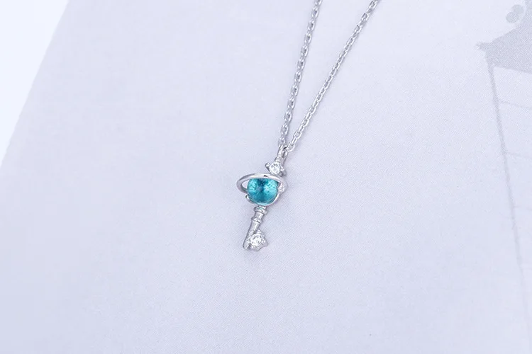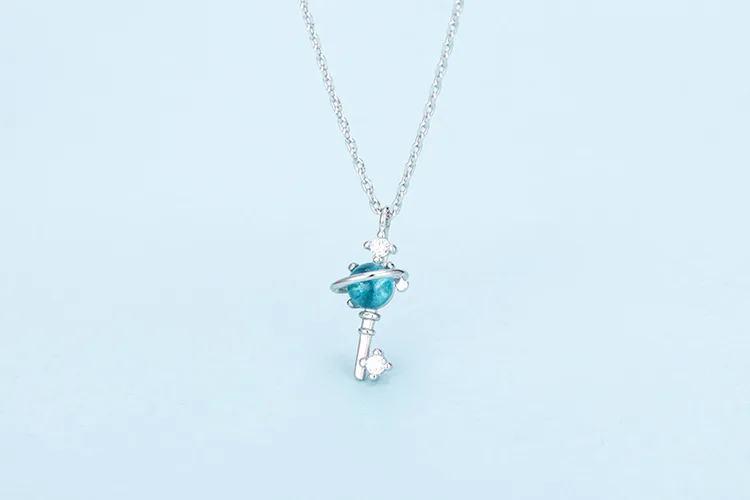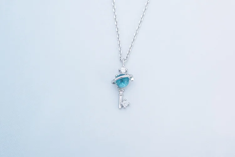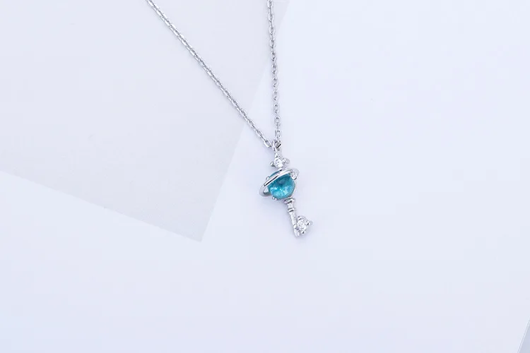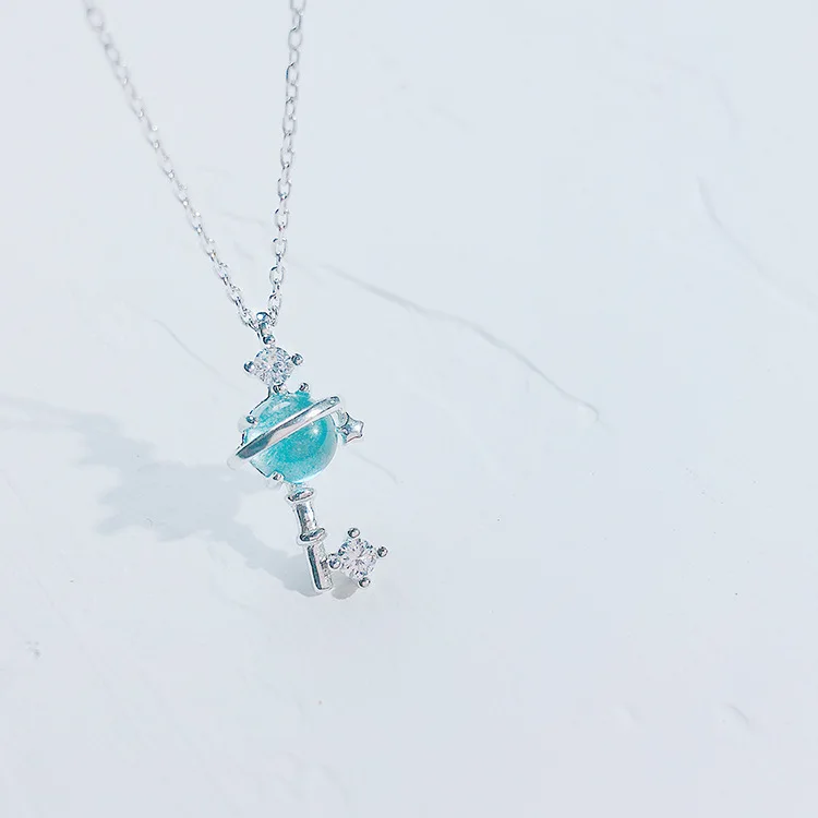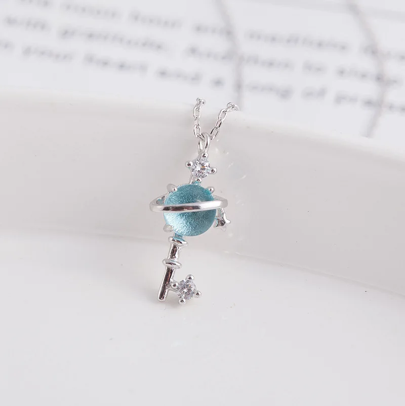 victoria’s vogue New Arrival Creative Planet Key Fashion 925 Sterling Silver Jewelry Personality Beautiful Blue Crystal Pendant Necklaces