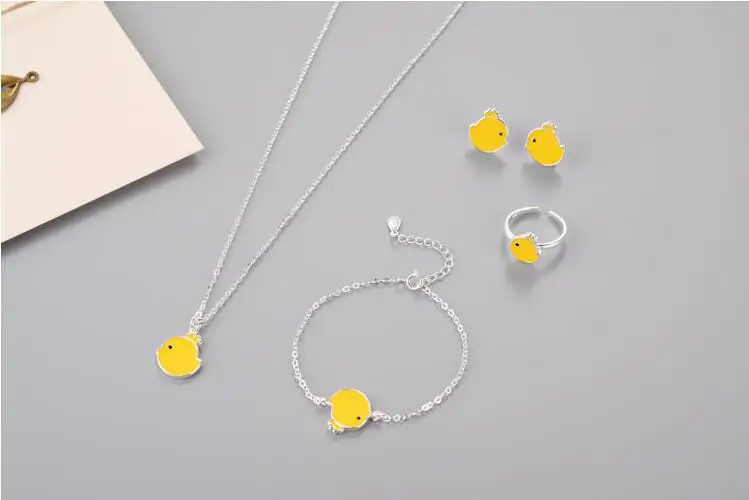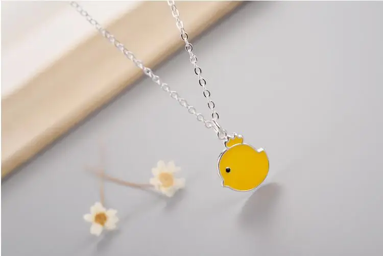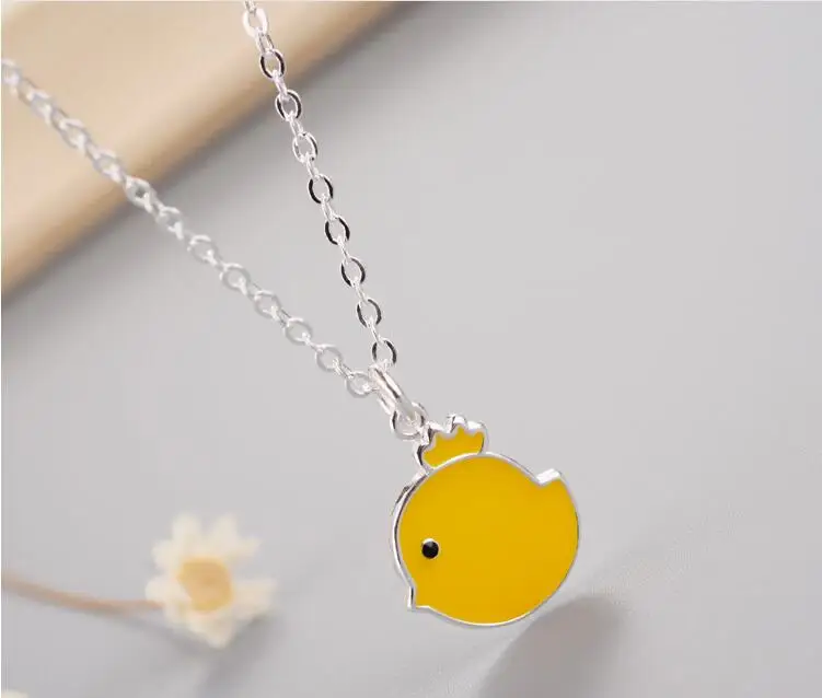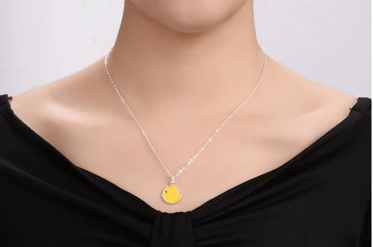 Victoria’s Vogue New Arrival Fashion Cute Animal 925 Sterling Silver Jewelry Yellow Chicken Female Pendant Necklace