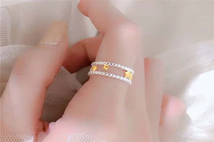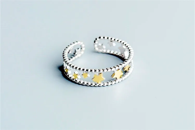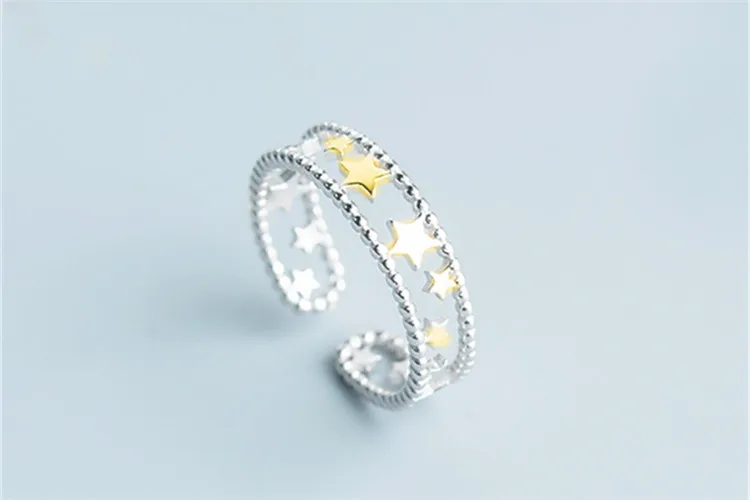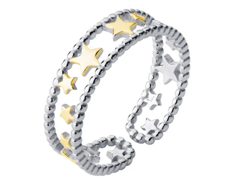 victoria’s vogue New Arrival Fashion Double-layer Five-pointed Star Silver Plated Jewelry Exquisite Galaxy Personality Opening Rings