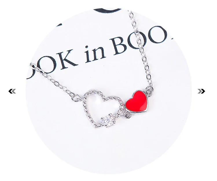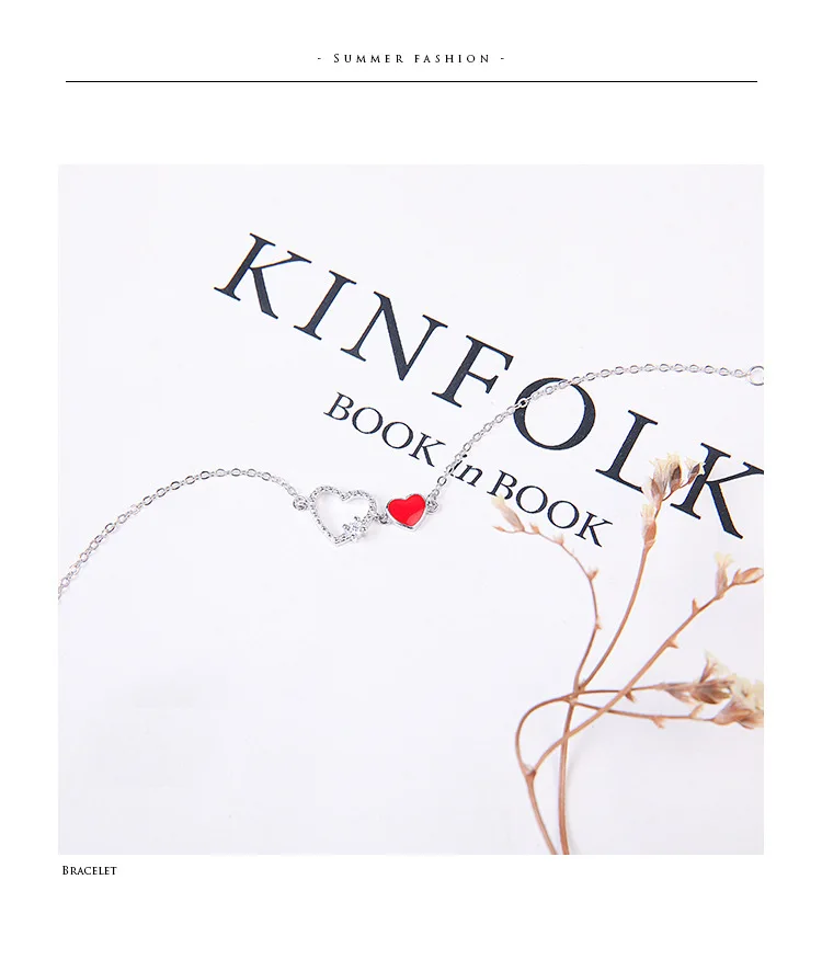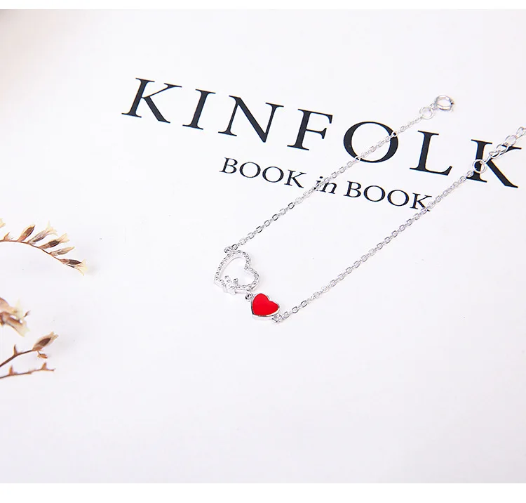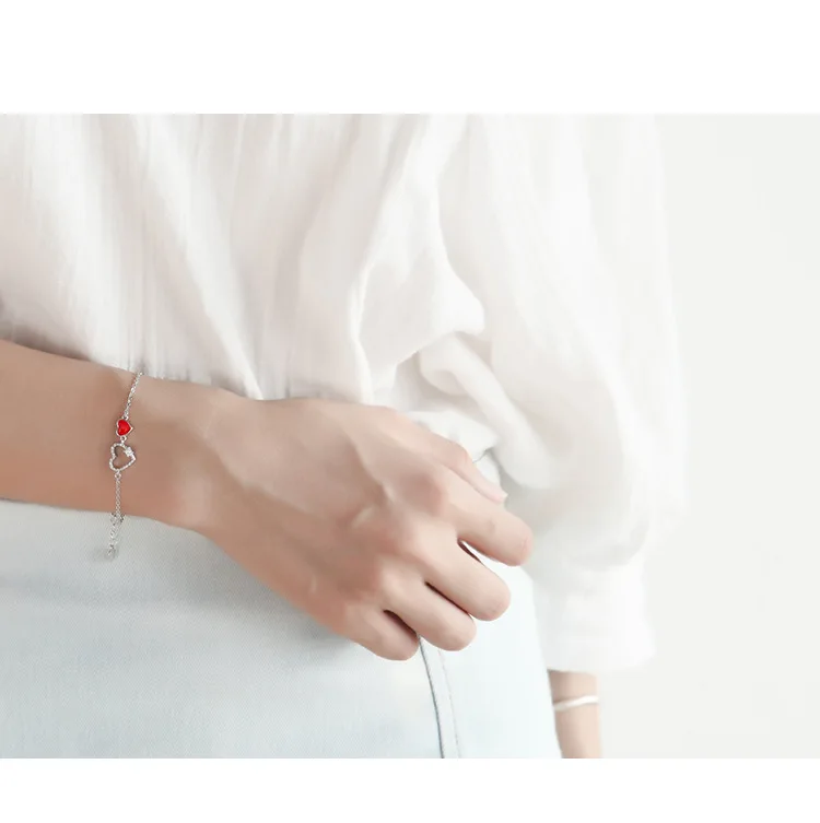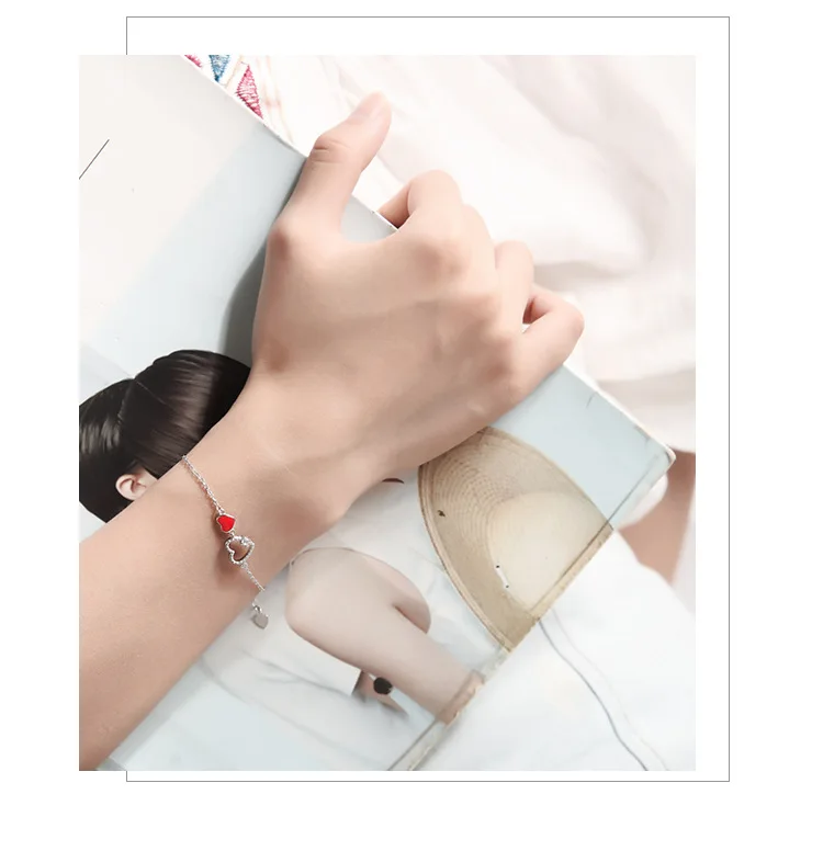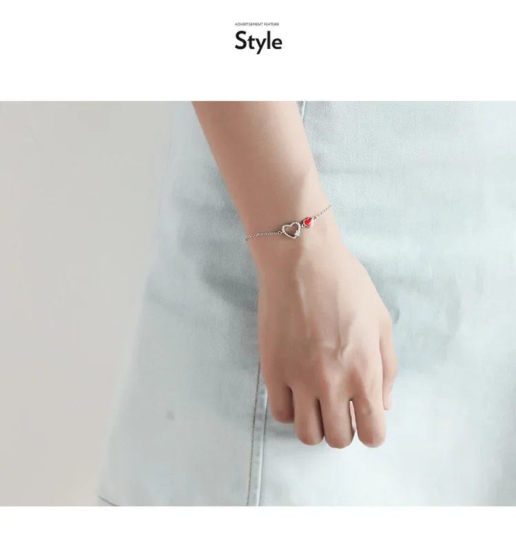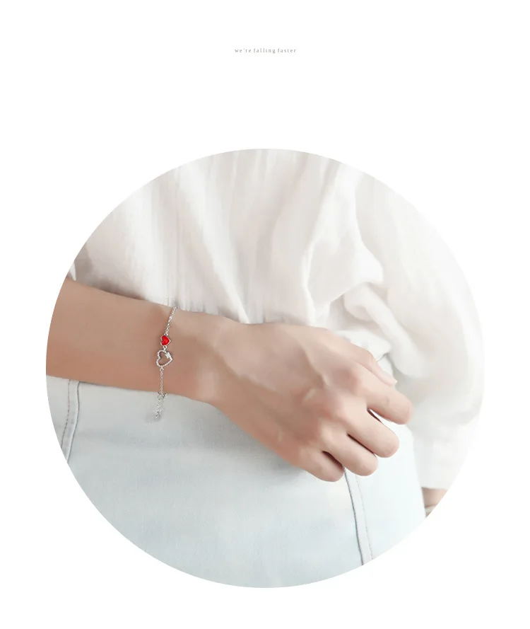 Victoria’s Vogue New Arrival Hollow Love Red Heart Simple 925 Sterling Silver Jewelry Cute Double Peach Personality Crystal Women Bracelets