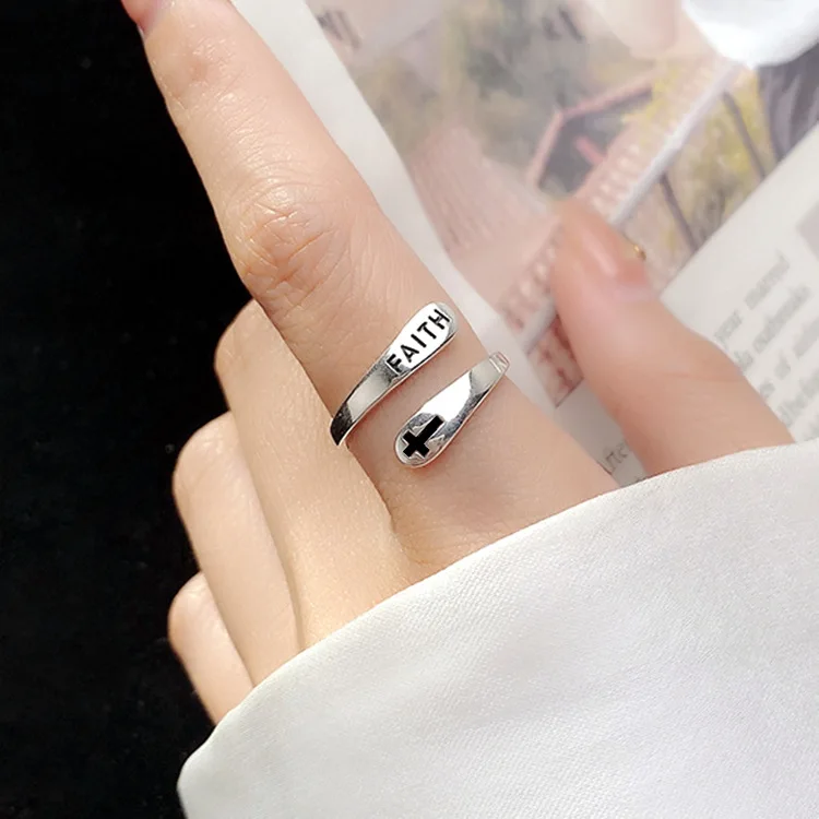 Victoria’s Vogue New Arrival Personality Cross Letters 925 Sterling Silver Jewelry Ethnic Style Faith Cross Exquisite Popular Opening Rings