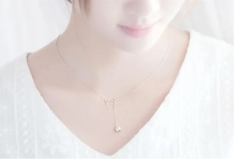 Victoria’s Vogue New Arrival Simple Popular Accessories 925 Sterling Silver Jewelry Cute Cat Bell Personality Female Gift Necklaces