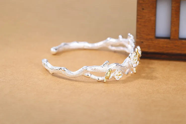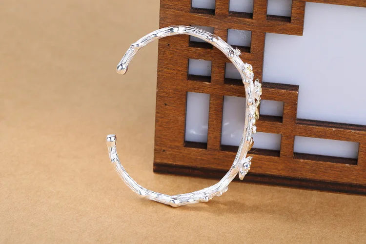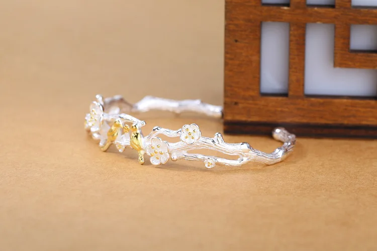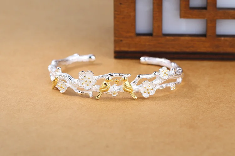 Victoria’s Vogue New Arrival Temperament Creative Fashion 925 Sterling Silver Jewelry Bracelets Cute Bird Plum Blossom Christmas Bangles