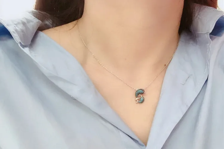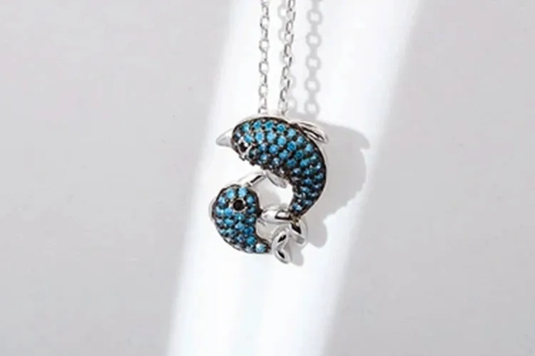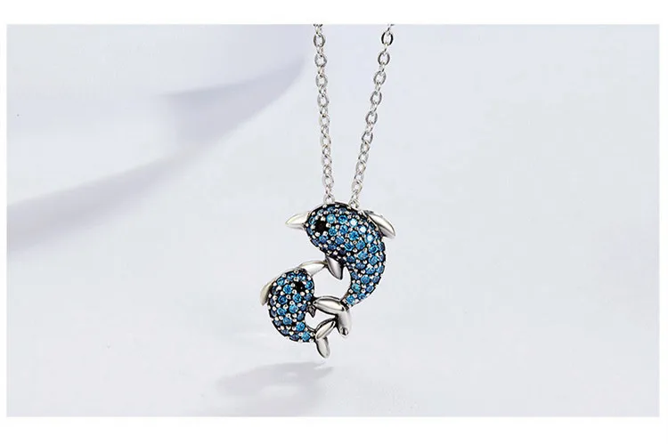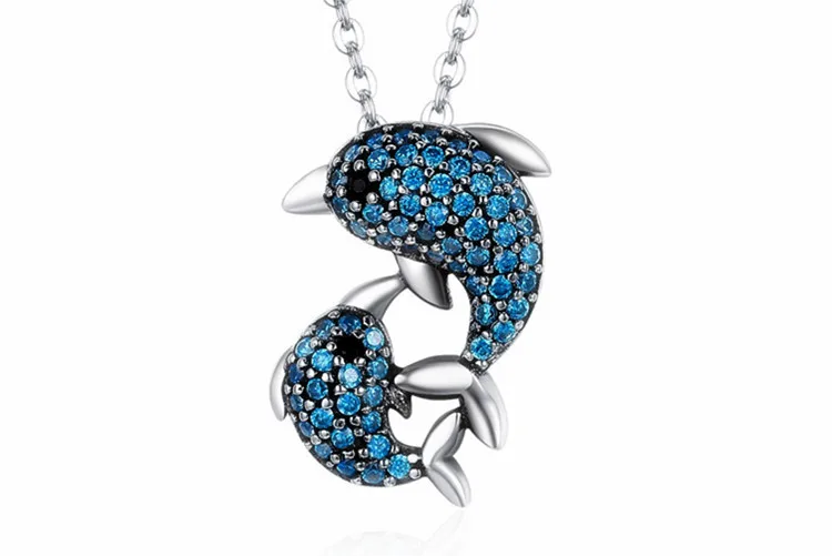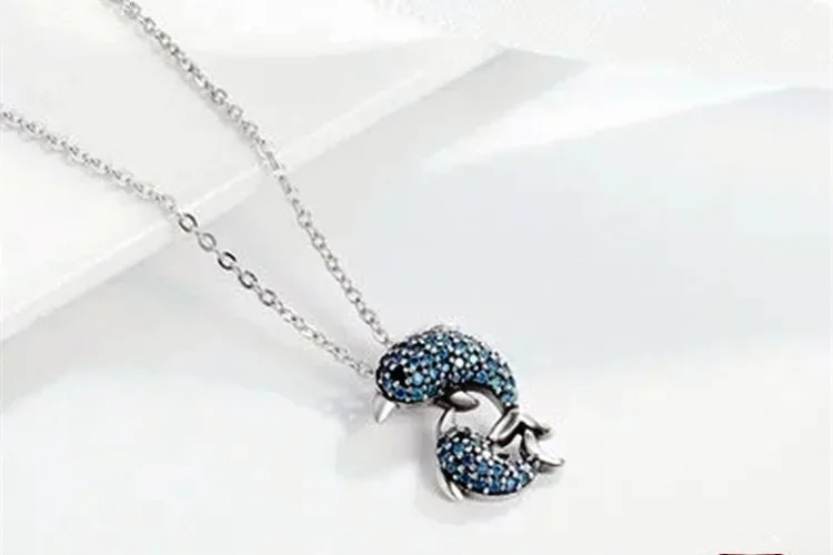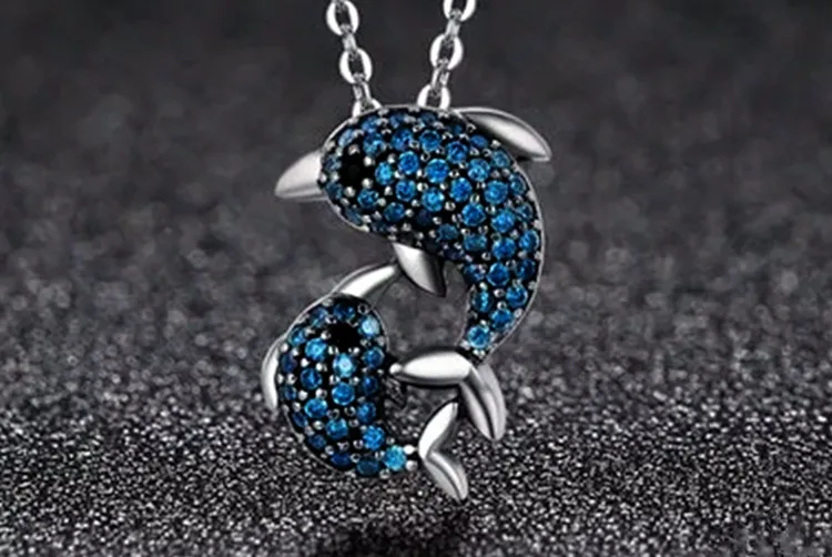victoria’s vogue New Atmosphere Exquisite Double Dolphin Fashion 925 Sterling Silver Jewelry Lovers Blue Crystal Temperament Necklaces