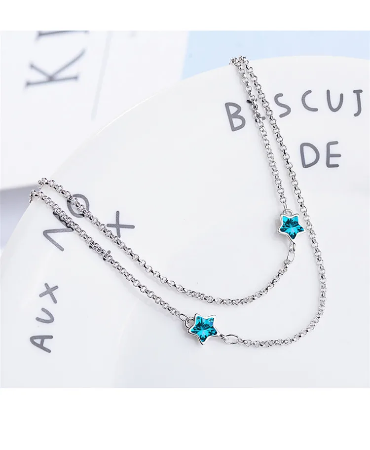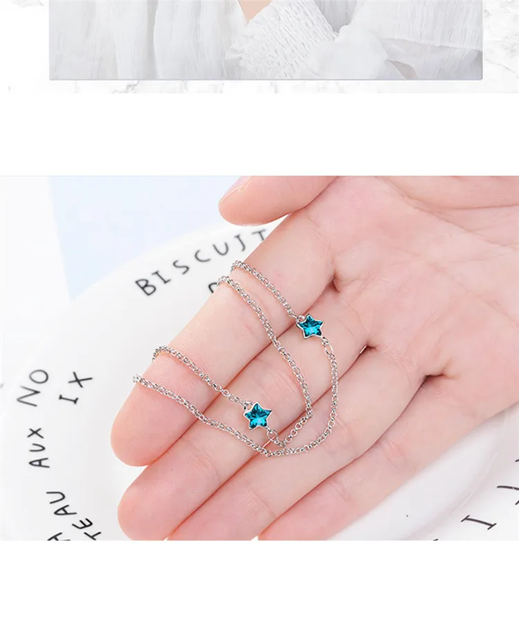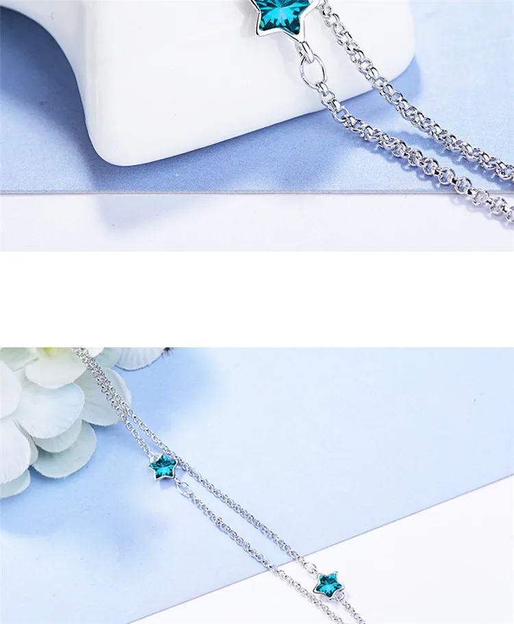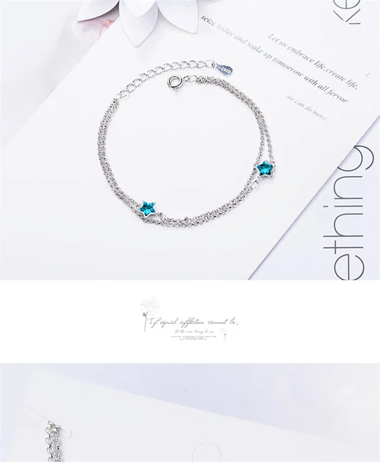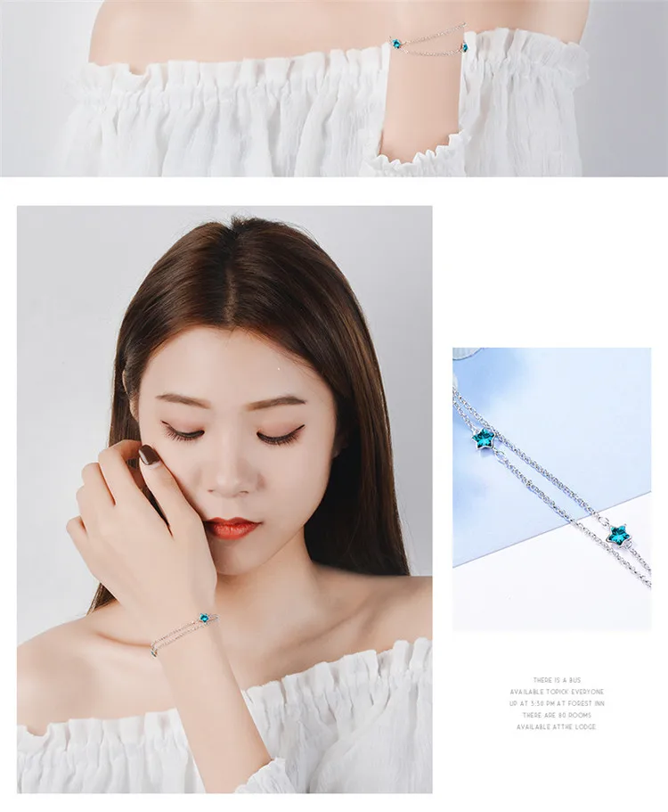 Victoria’s Vogue New Atmosphere Fashion Exquisite 925 Sterling Silver Jewelry Blue Five Pointed Star Crystal Double Layer Sweet Bracelets