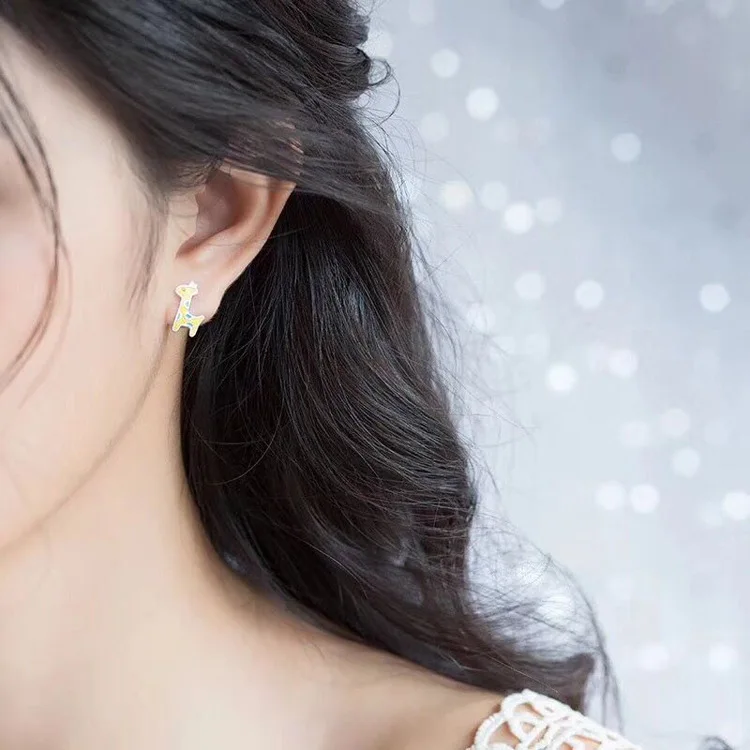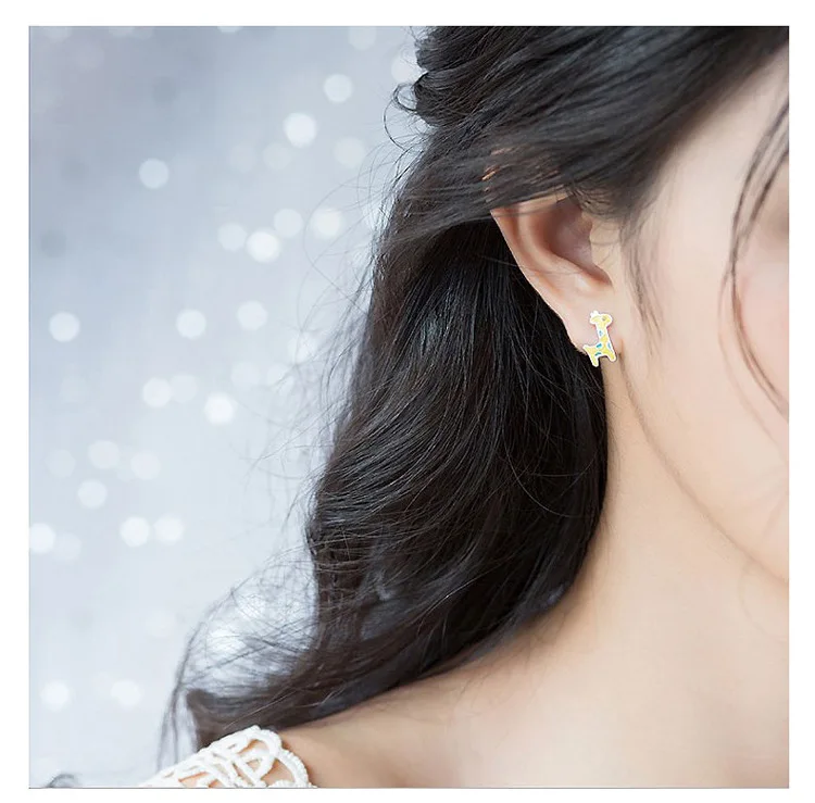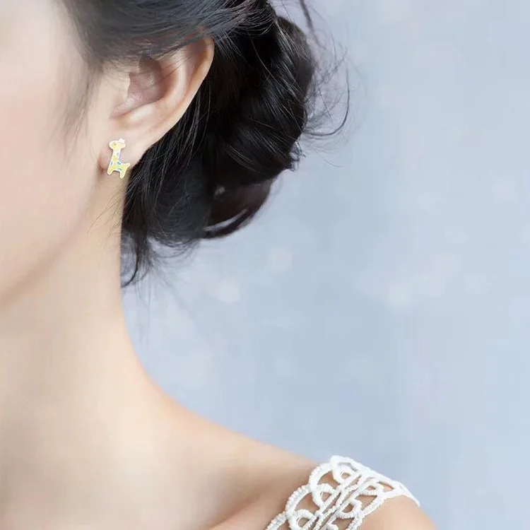 Victoria’s Vogue New Beautiful Fashion Sweet Colorful 925 Sterling Silver Jewelry Cute Giraffe Epoxy Exquisite Women Gift Stud Earrings