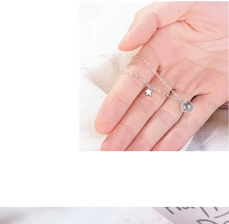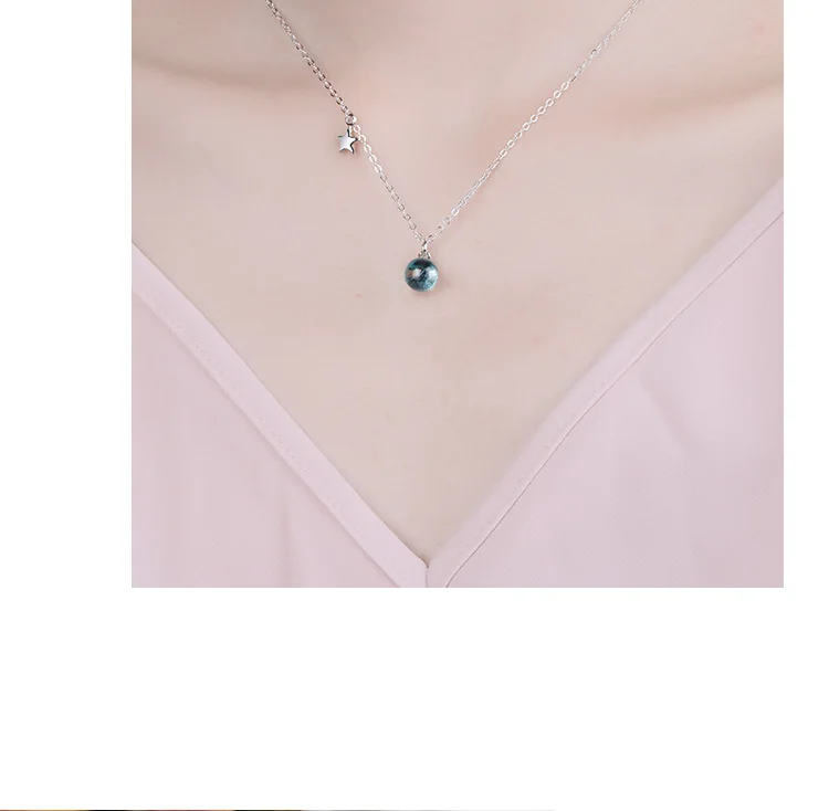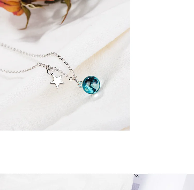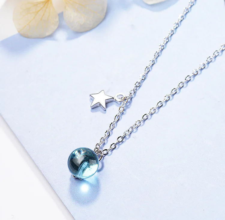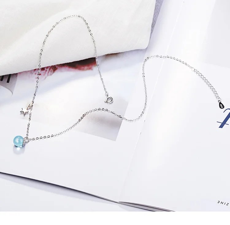 Victoria’s Vogue New Beautiful Female Exquisite 925 Sterling Silver Jewelry Star And Blue Ball Crystal Clavicle Chain Pendant Necklaces