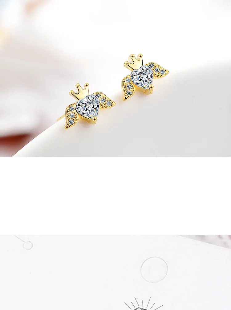 Victoria’s Vogue New Beautiful Sweet Wings Angel 925 Sterling Silver Jewelry Temperament Crown Crystal Exquisite Stud Earrings