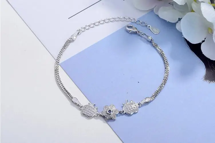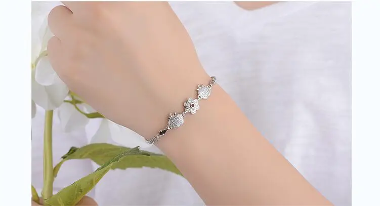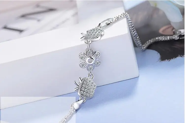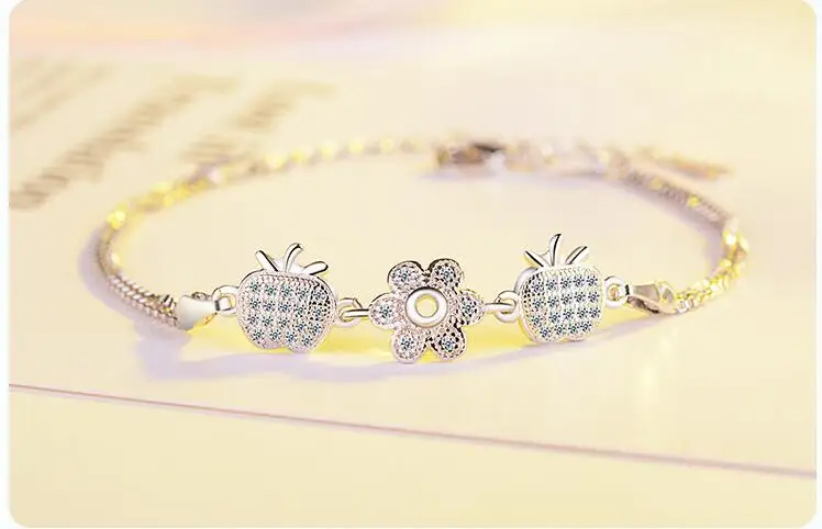 Victoria’s Vogue New Classic Round 925 Sterling Silver Jewelry Personality Simple Apple Flower Crystal Temperament Female Bracelets