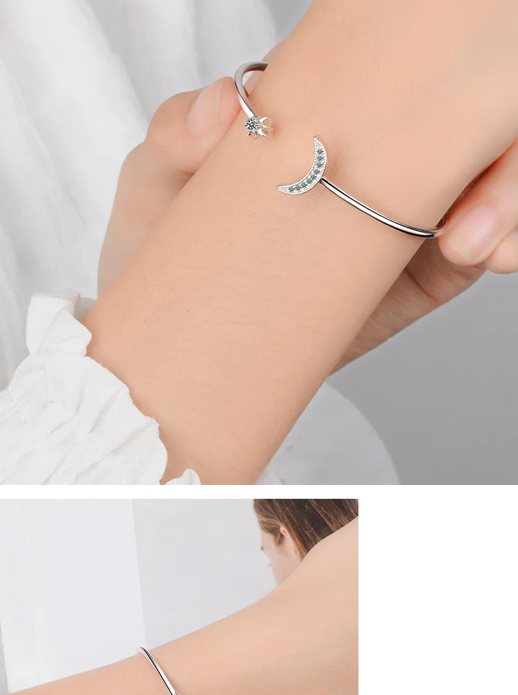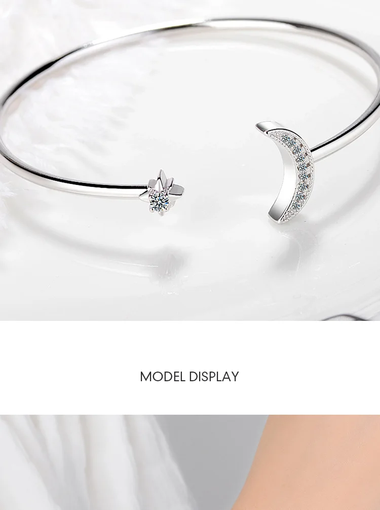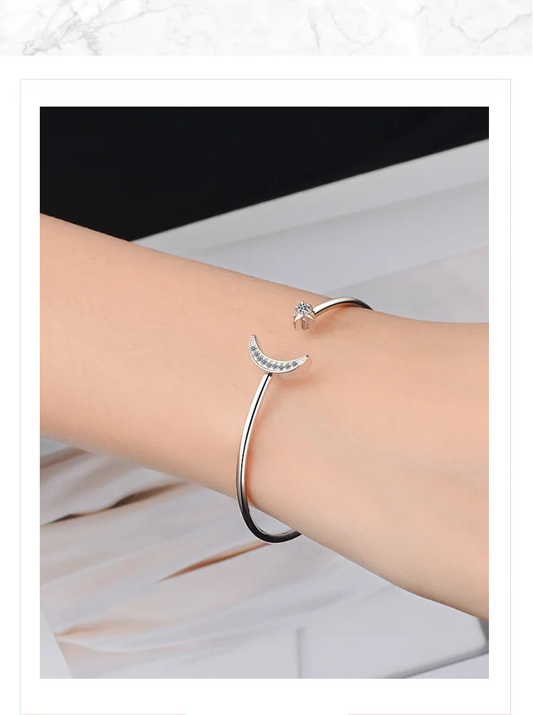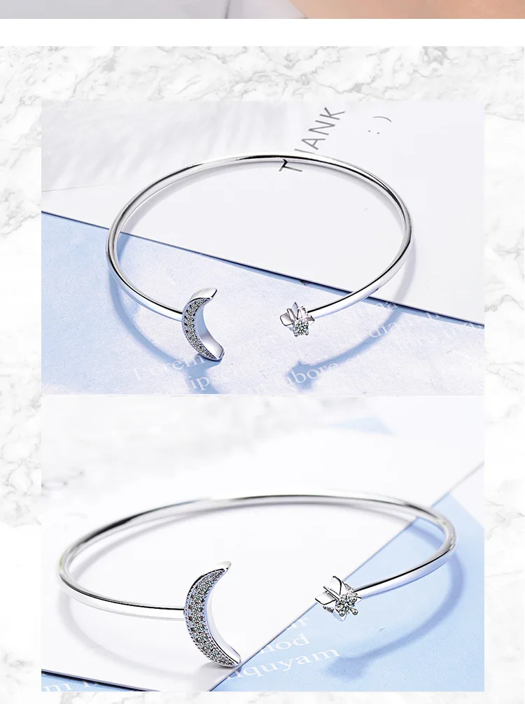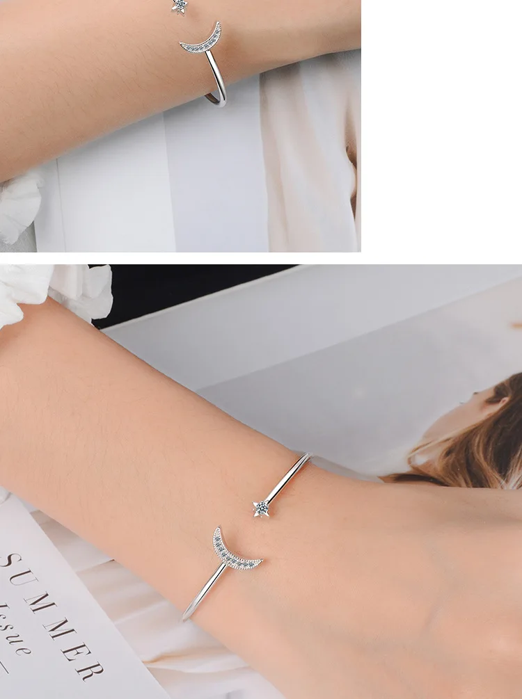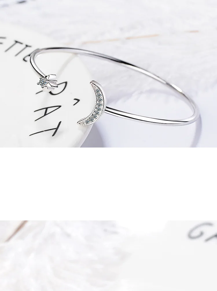 Victoria’s Vogue New Creative Beautiful Star And Moon 925 Sterling Silver Jewelry Bracelets Personality Temperament Crystal Women Bangles