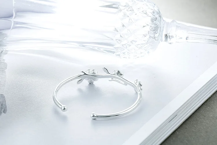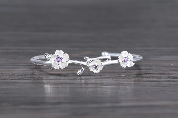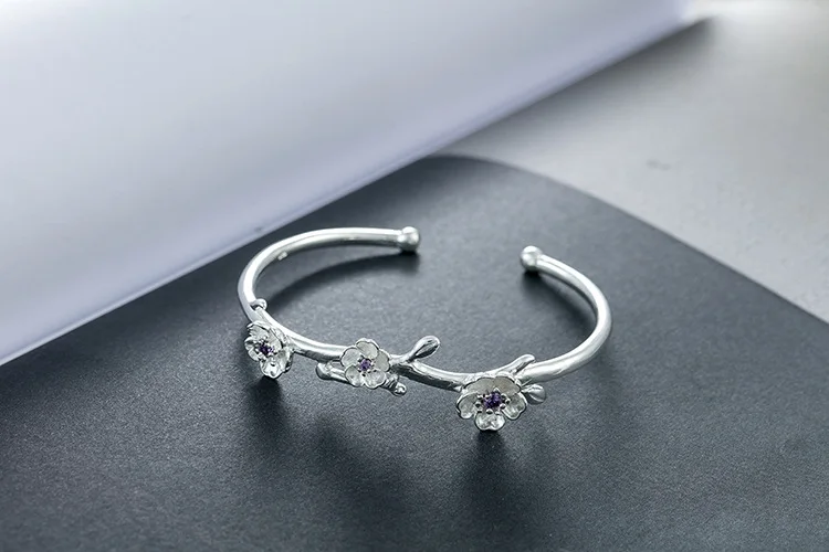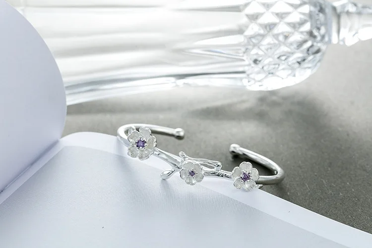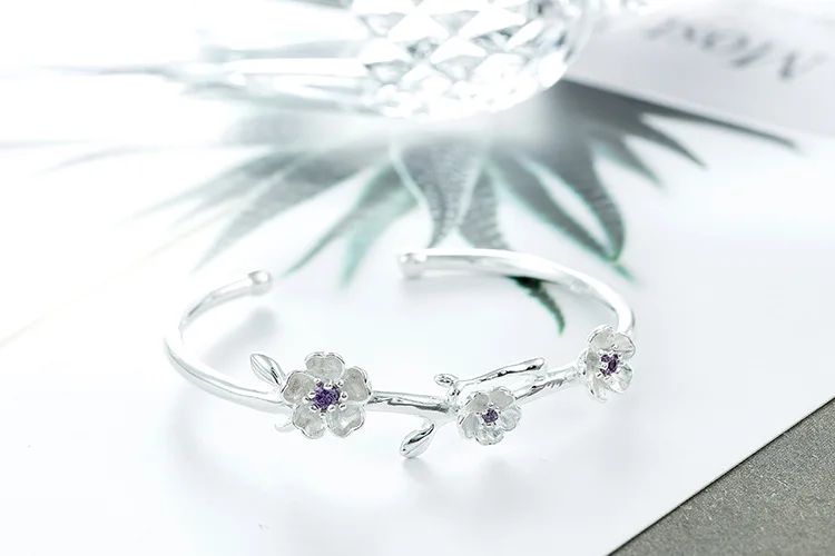 Victoria’s Vogue New Creative Fashion Bracelets Flower 925 Sterling Silver Jewelry Three Lotus Flowers Purple Crystal Opening Bangles