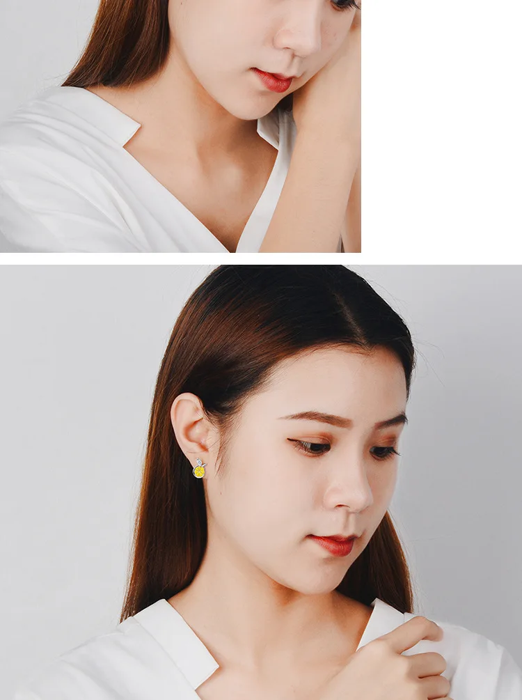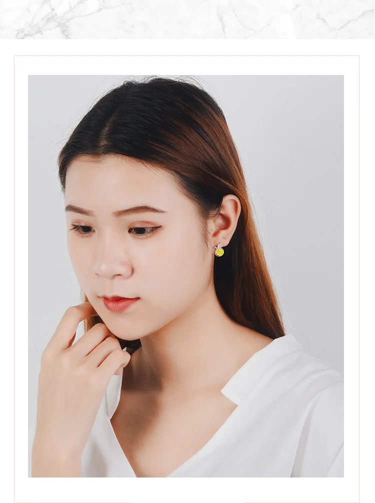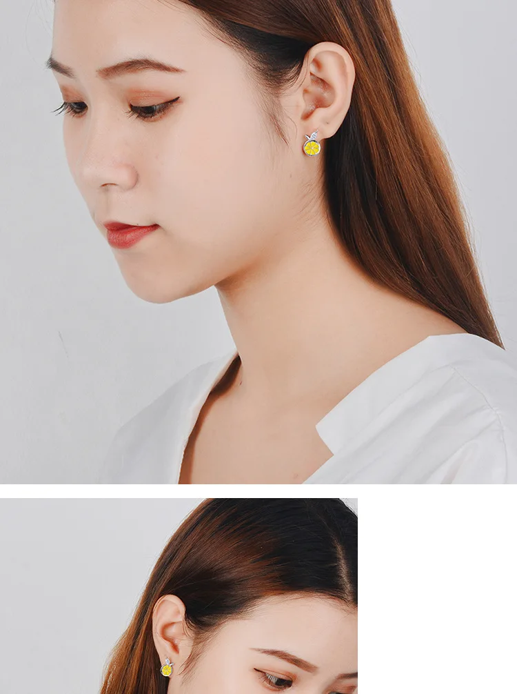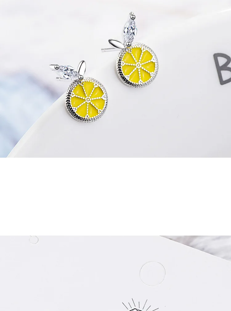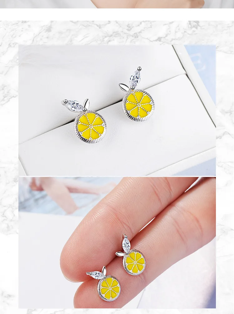 Victoria’s Vogue New Creative Fashion Lemon Plant Temperament 925 Sterling Silver Jewelry Cute Fruit Leaf Crystal Women Gift Stud Earrings