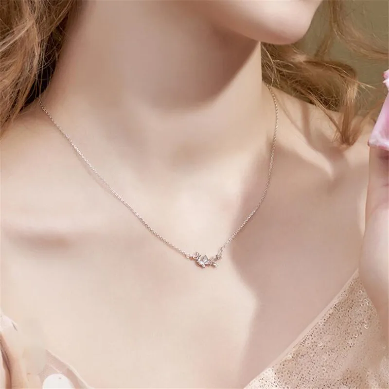 Victoria’s Vogue New Creative Hollow Exquisite Butterfly Romantic Flying 925 Sterling Silver Jewelry Heart Crystal Clavicle Chain Necklaces