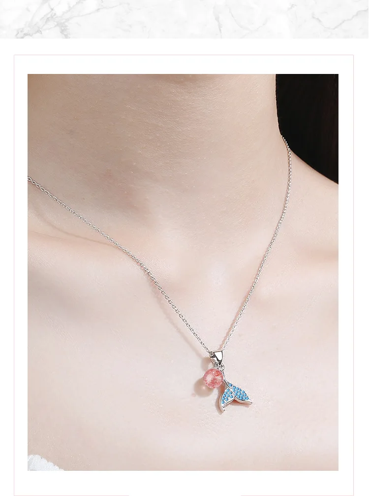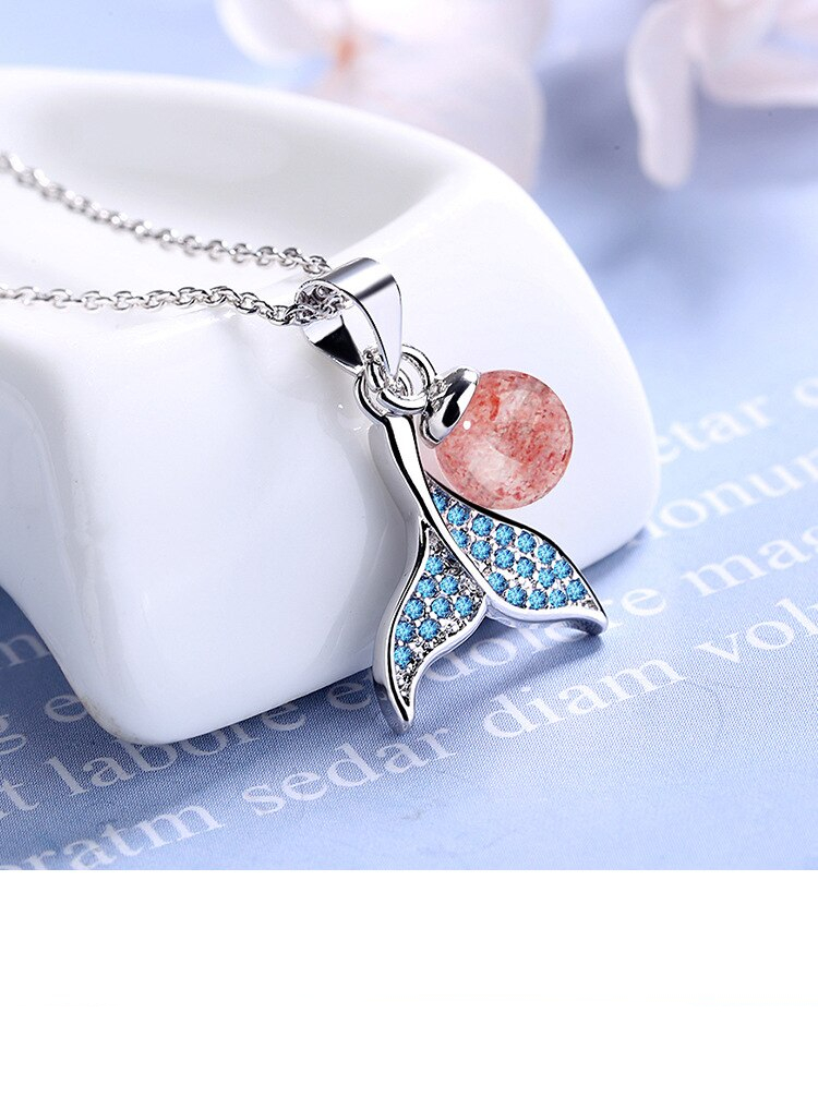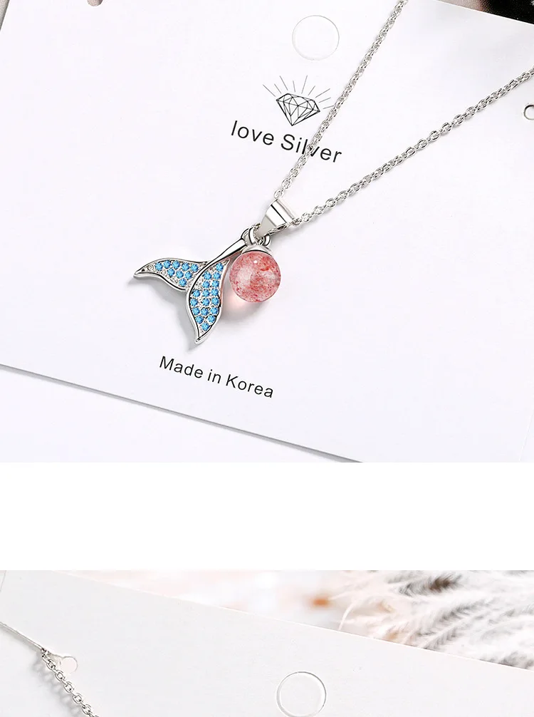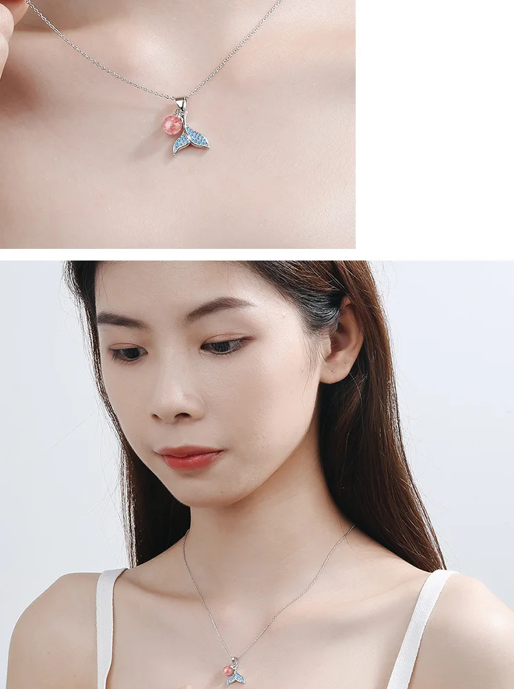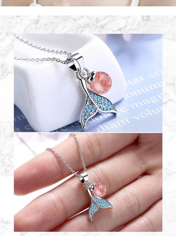victoria’s vogue New Creative Mermaid Dolphin 925 Sterling Silver Jewelry Natural Strawberry Crystal Pink Peach Blossom Pendant Necklaces