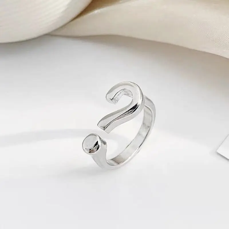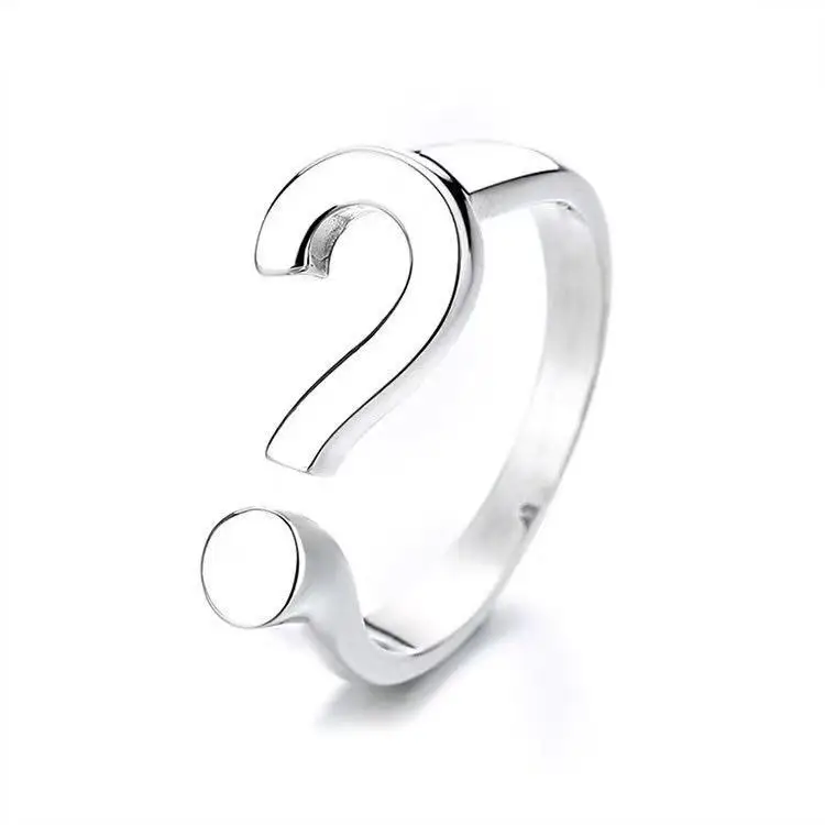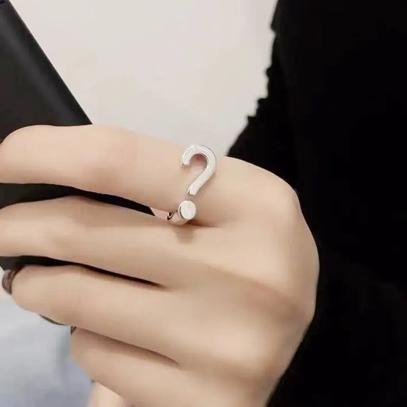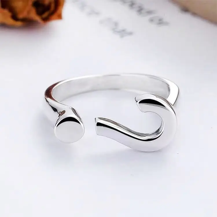 victoria’s vogue New Creative Question Mark Shape 925 Sterling Silver Jewelry Personality Temperament Geometric Opening Rings