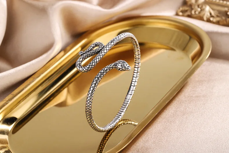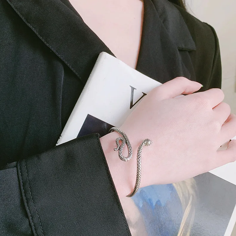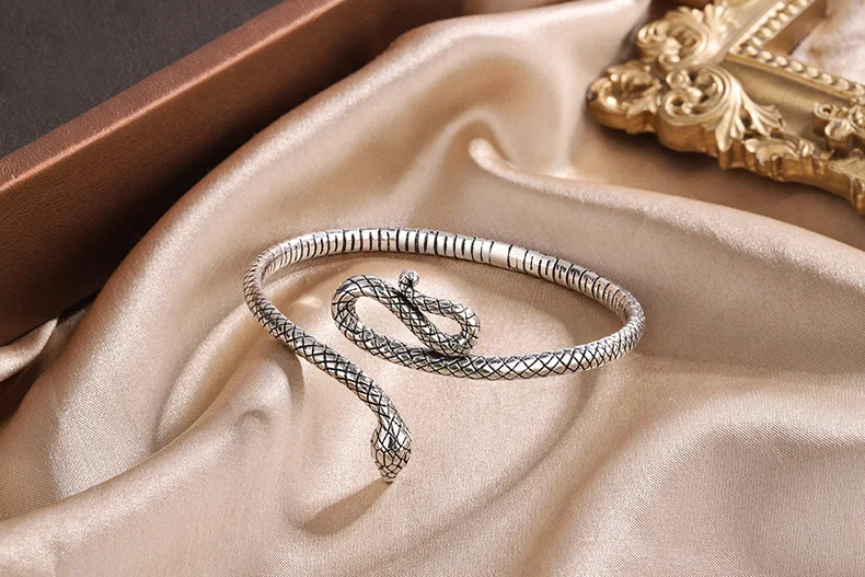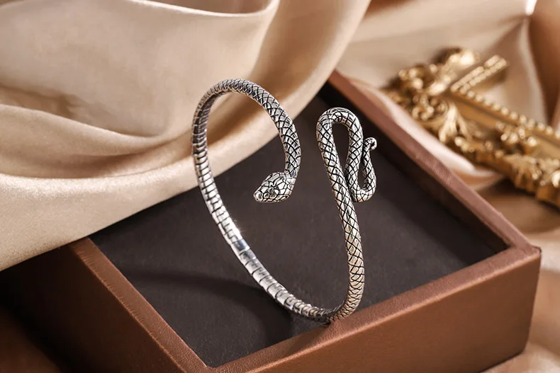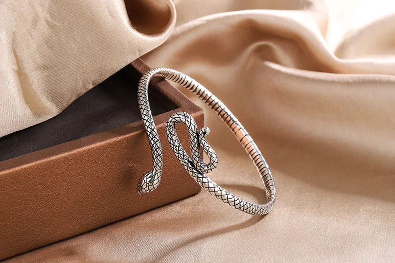 victoria’s vogue New Creative Retro Snake Shape Bracelets 925 Sterling Silver Jewelry Personality Temperament Animal Opening Bangles