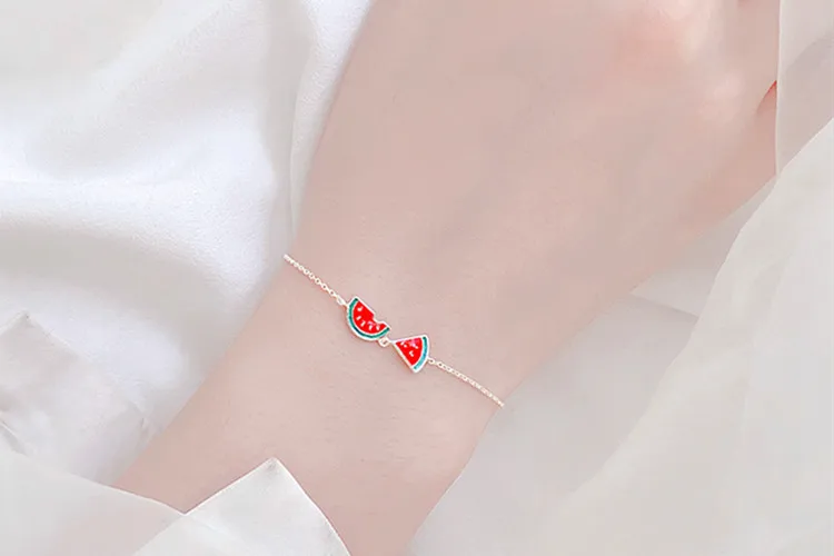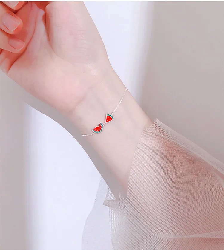 Victoria’s Vogue New Creative Simple Cute Watermelon Fashion 925 Sterling Silver Jewelry Personality Sweet Epoxy Fruit Bracelets