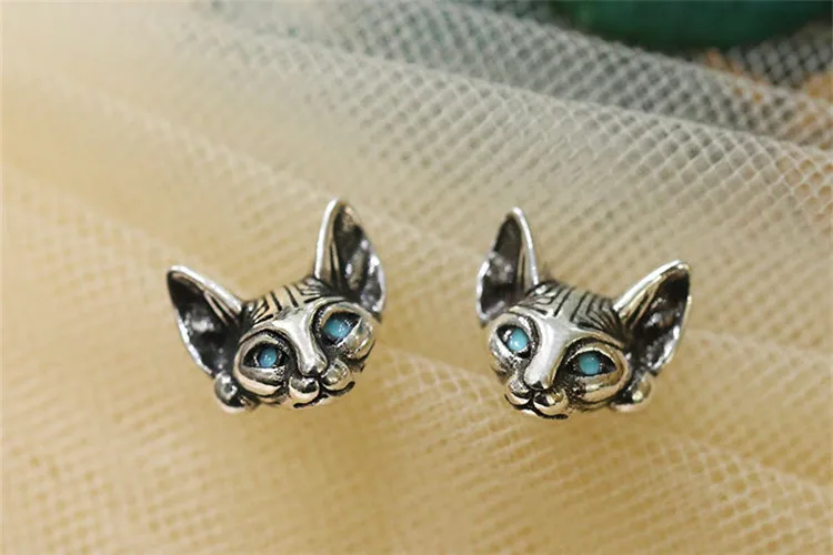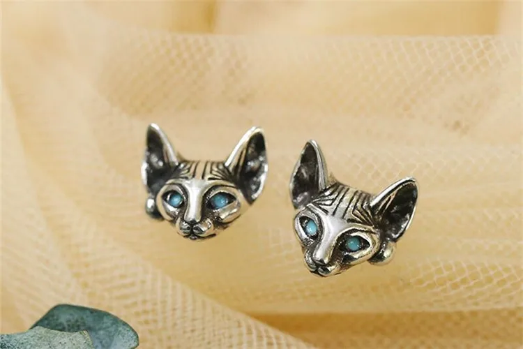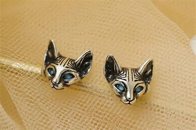 victoria’s vogue New Creative Sphinx Cat 925 Sterling Silver Jewelry Personality Retro Exquisite Animal Temperament Stud Earrings