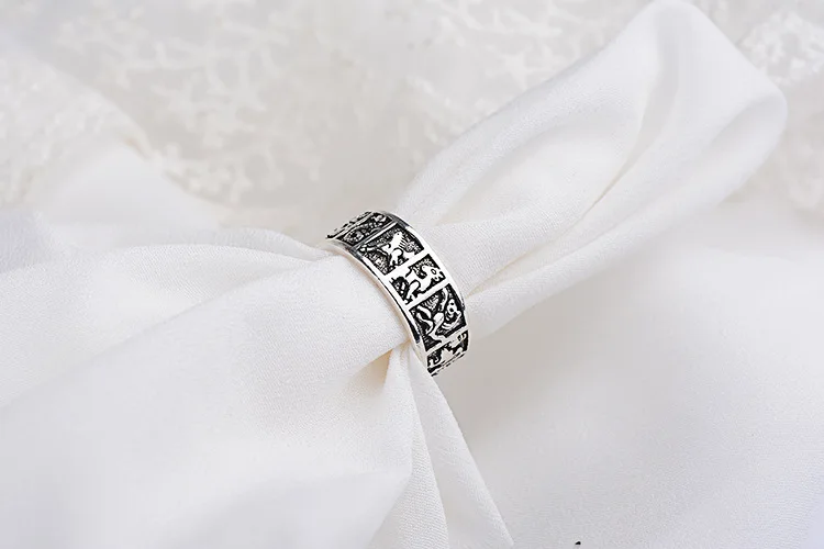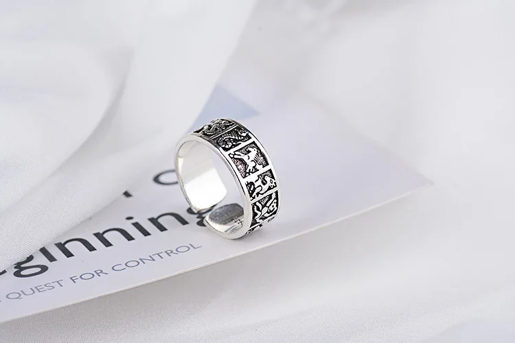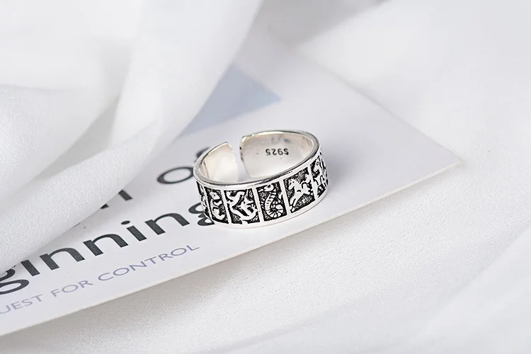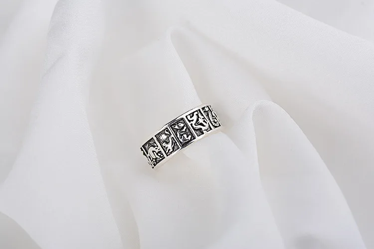 Victoria’s Vogue New Creative Thai Silver Phase 12 Zodiac 925 Sterling Silver Jewelry Auspicious 12 Animals Ethnic Style Opening Rings