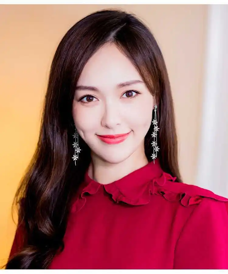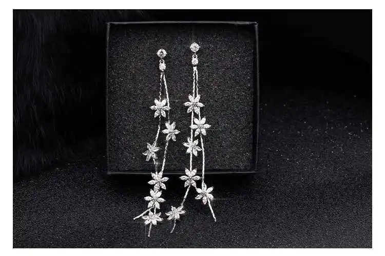 victoria’s vogue New Design Wedding Jewelry Luxury Clear Zircon Earrings Elegant 925 Sterling Silver long flower Stud Earrings For Women