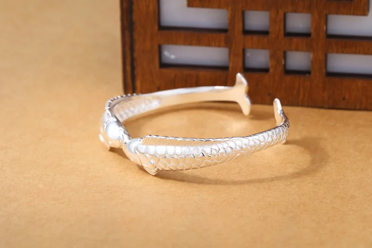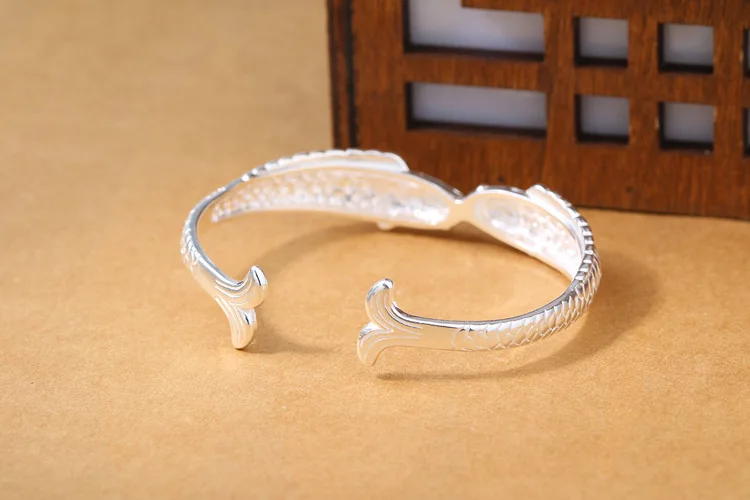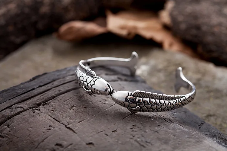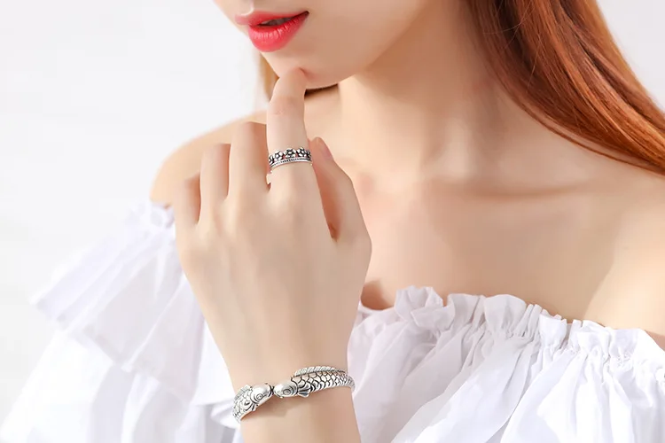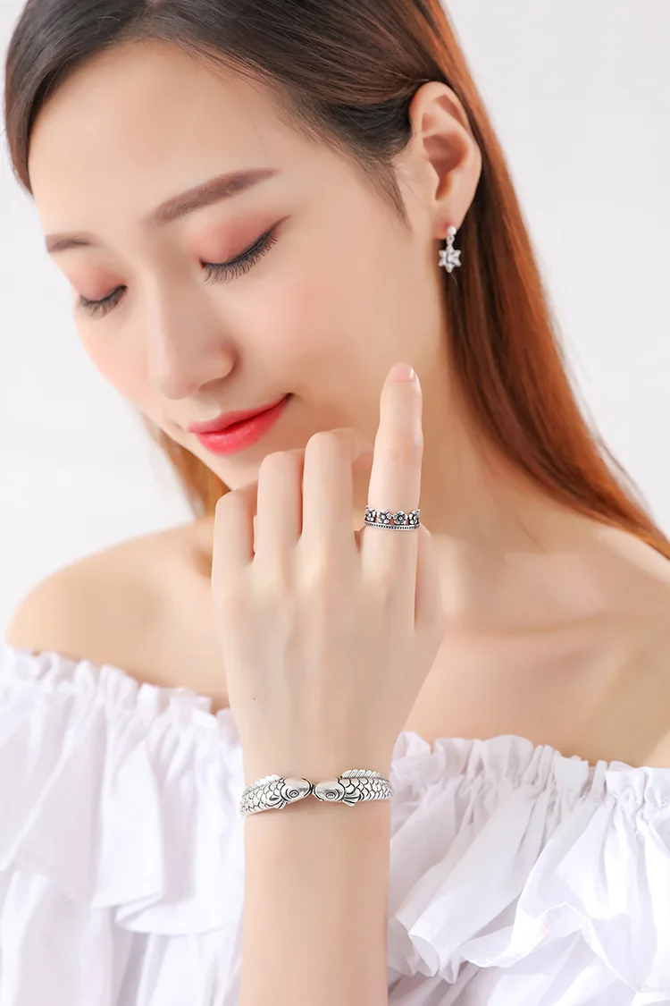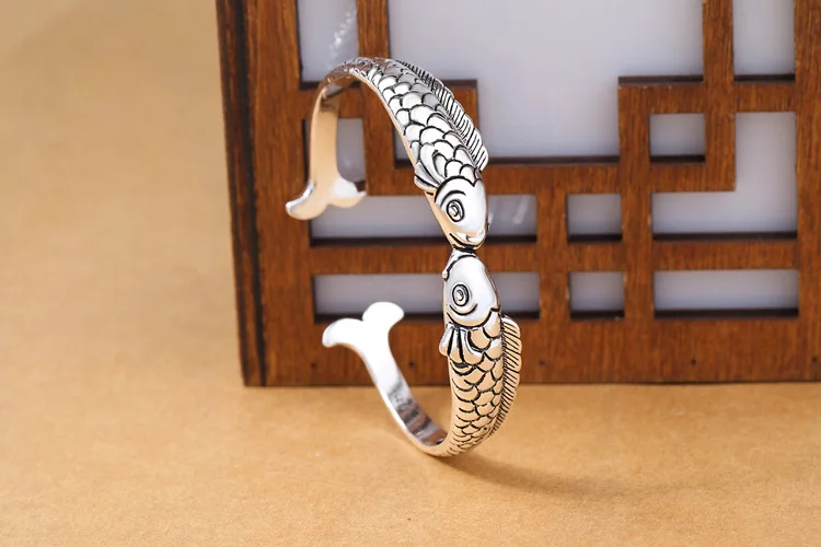 Victoria’s Vogue New Exquisite Cute Fish 925 Sterling Silver Jewelry Not Allergic Bracelets Pisces Double Fish Ethnic Style Retro Bangles
