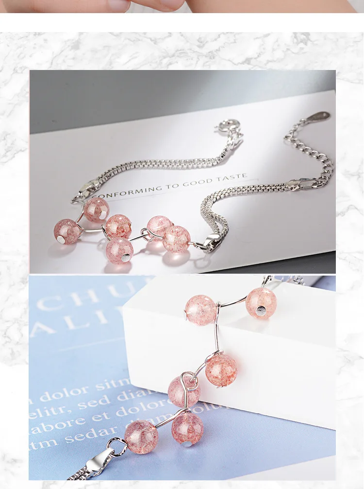 Victoria’s Vogue New Exquisite Personality Natural Strawberry Crystal Branch 925 Sterling Silver Jewelry Lightning Women Bracelets