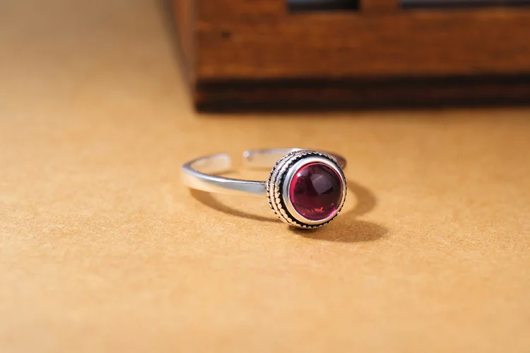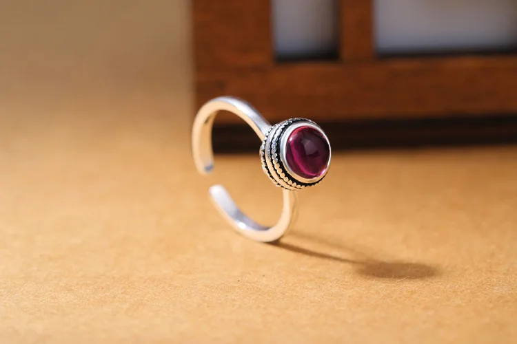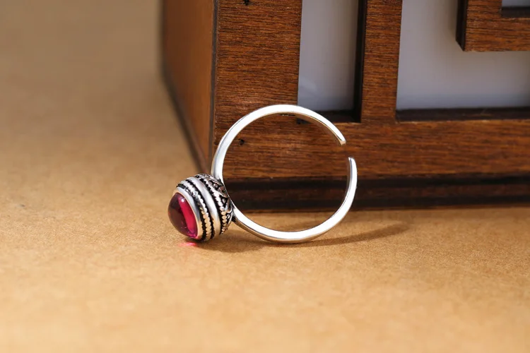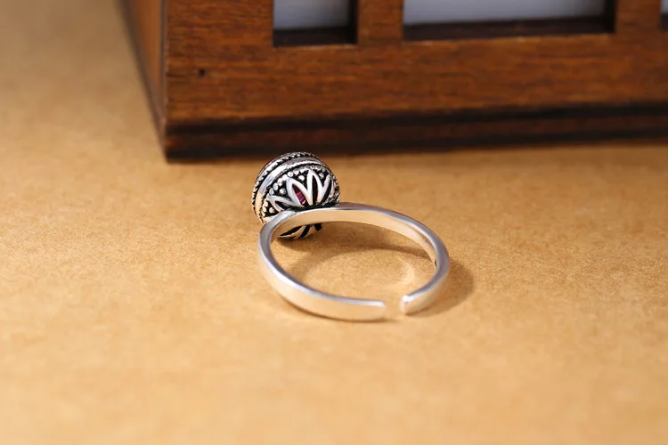 Victoria’s Vogue New Exquisite Retro Thai Silver Red Crystal 925 Sterling Silver Jewelry European Style Angel Personality Opening Rings