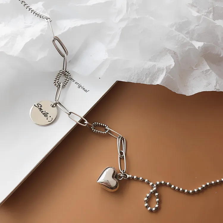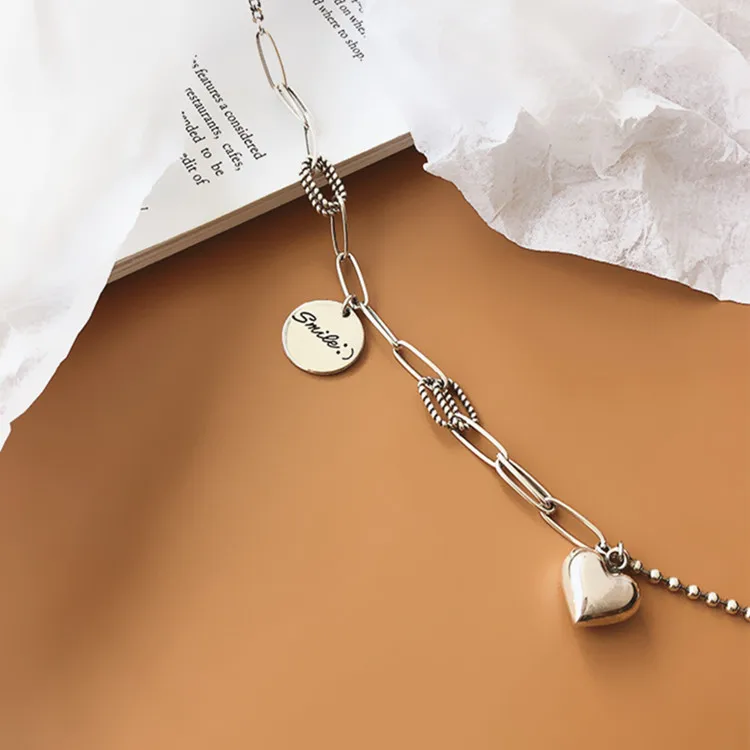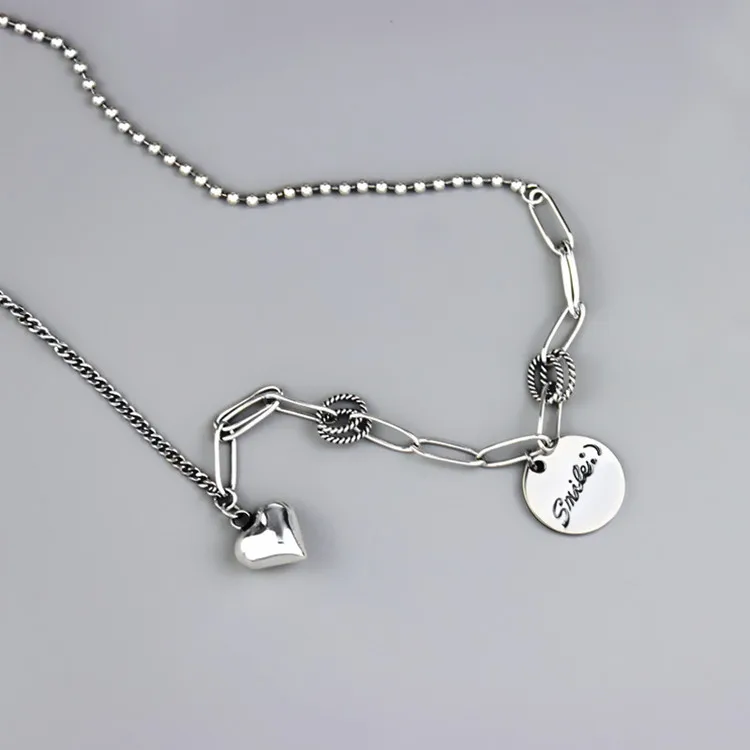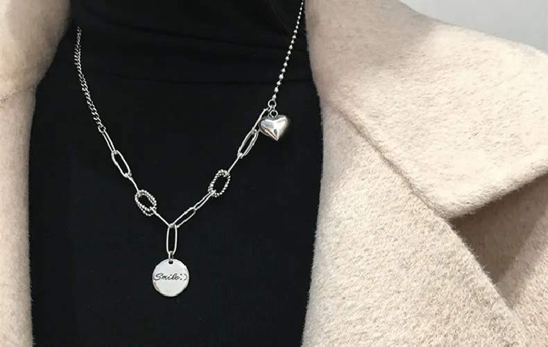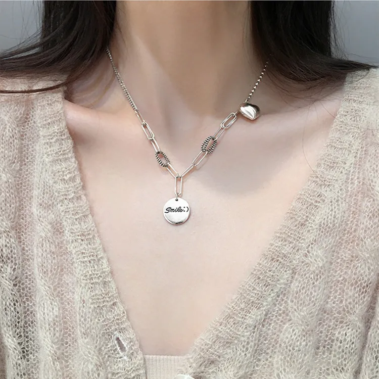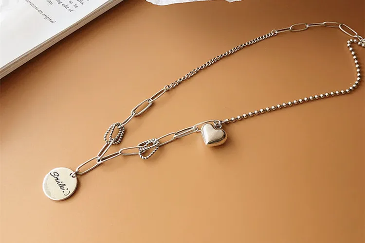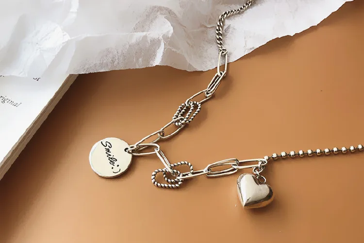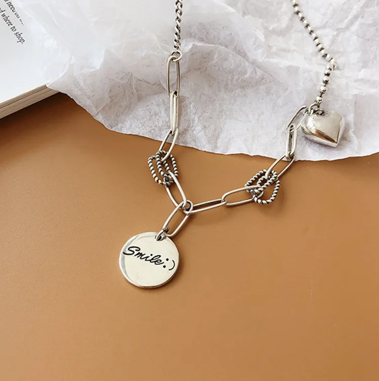 Victoria’s Vogue New Exquisite Smiley Face Round 925 Sterling Silver Jewelry Personality Thai Silver Heart-Shaped Love Letter Necklaces