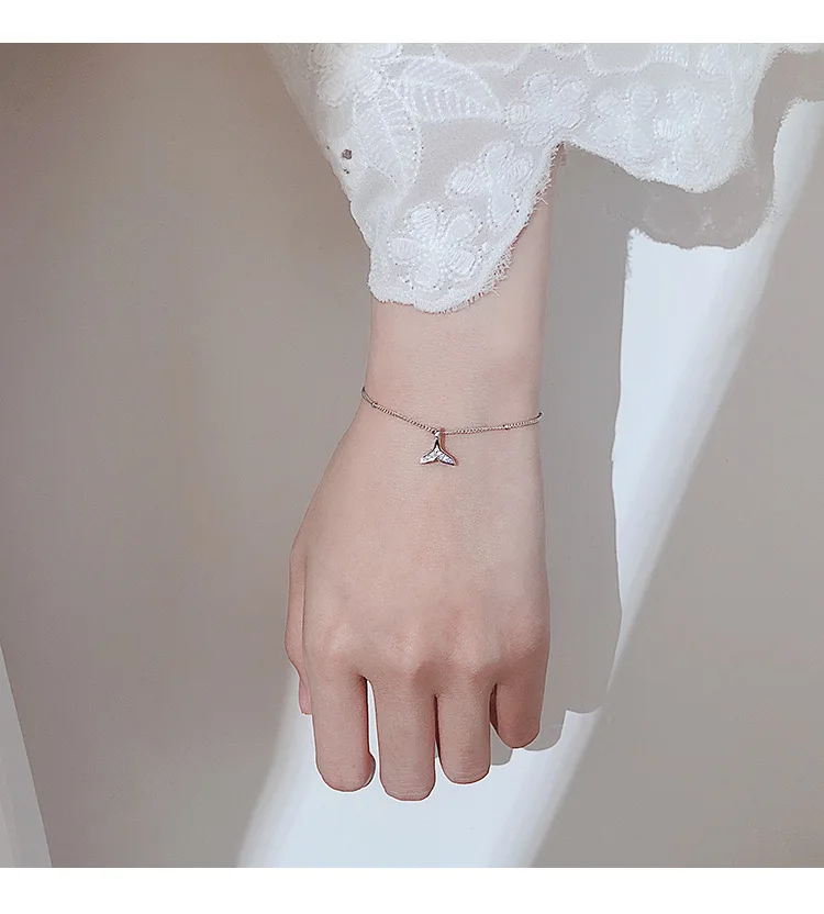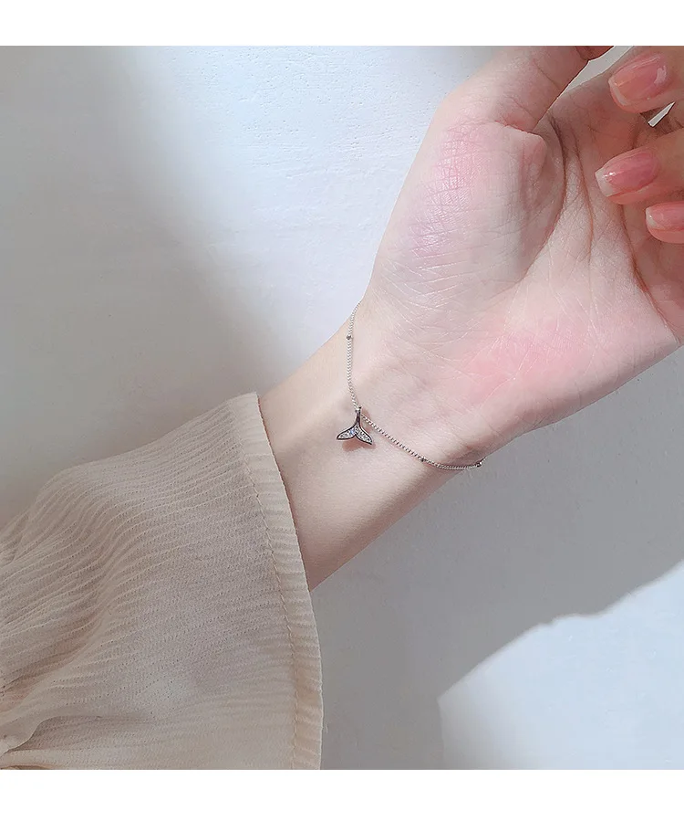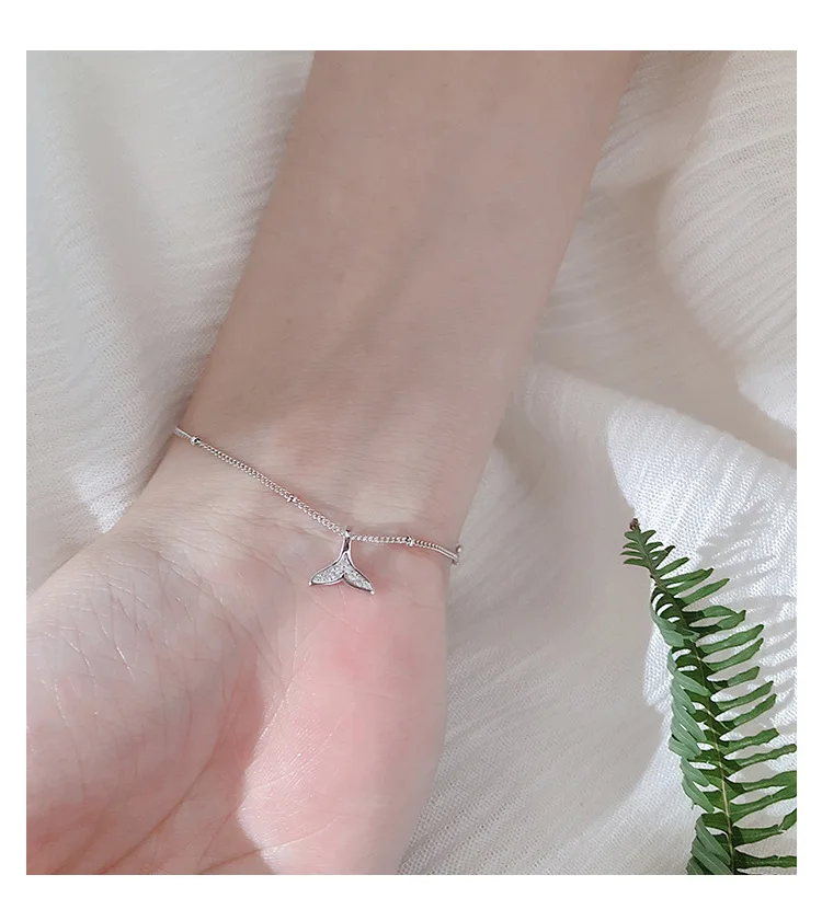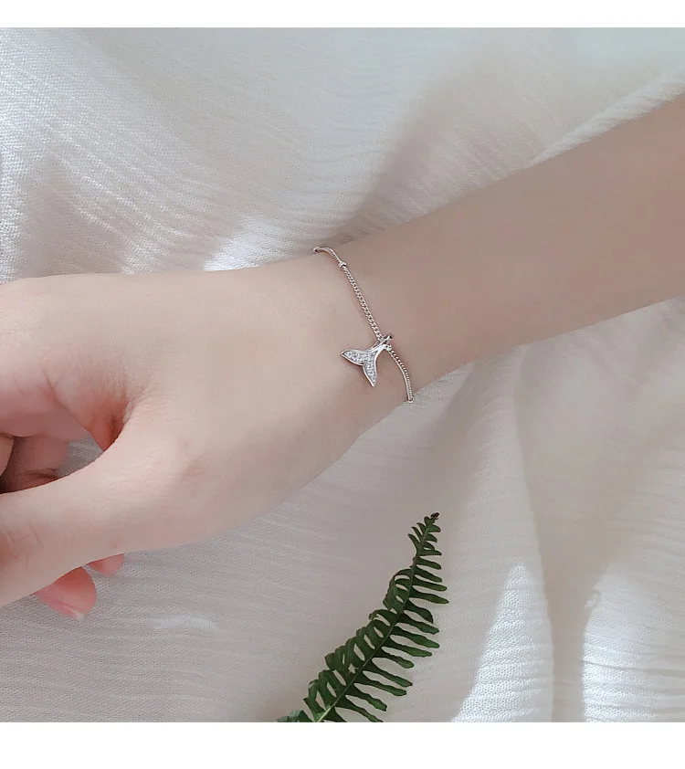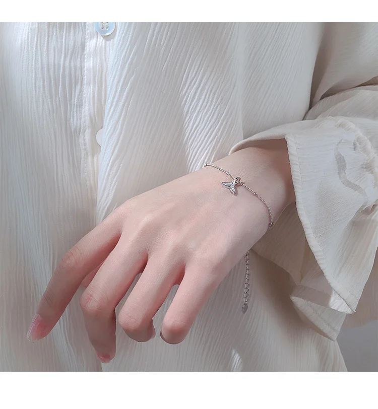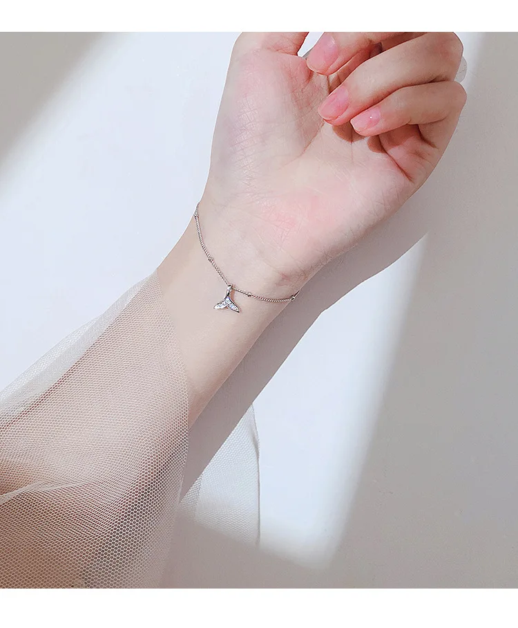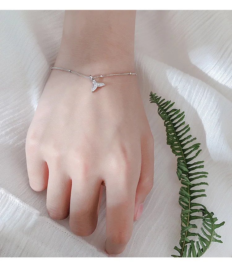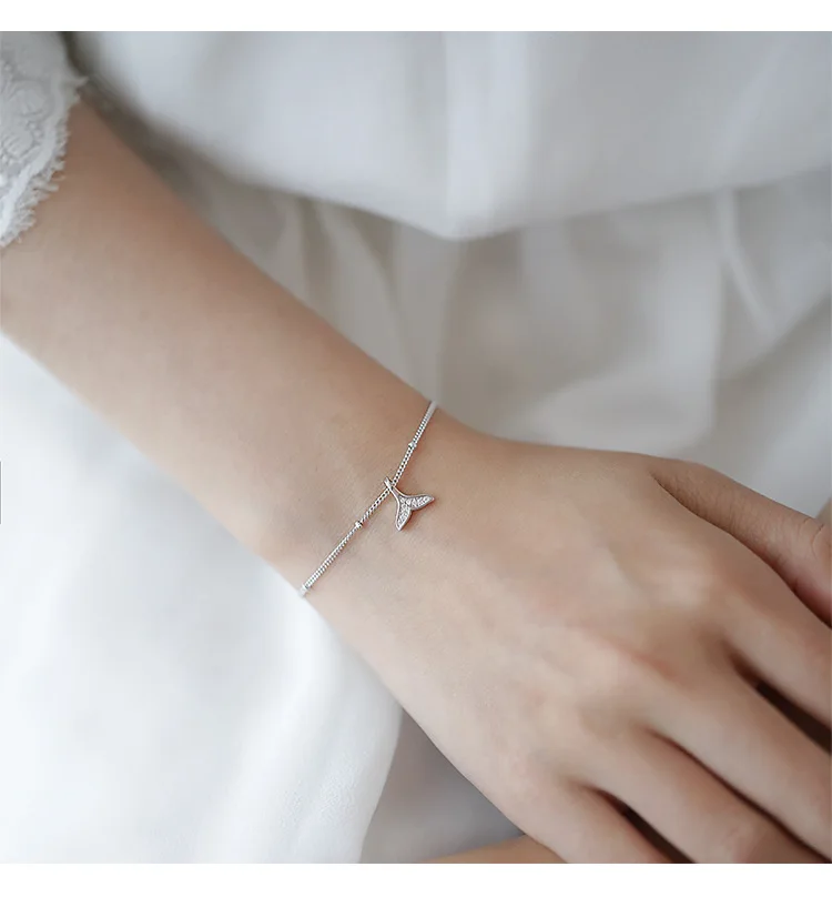 Victoria’s Vogue New Exquisite Temperament Mermaid Tail 925 Sterling Silver Jewelry Simple Fresh Crystal Fishtail Women Gift Bracelets