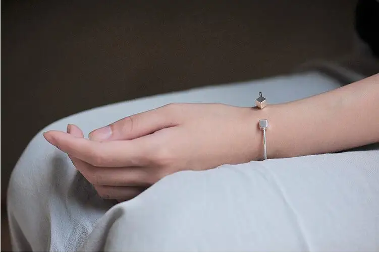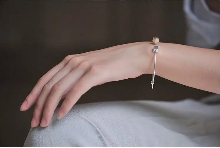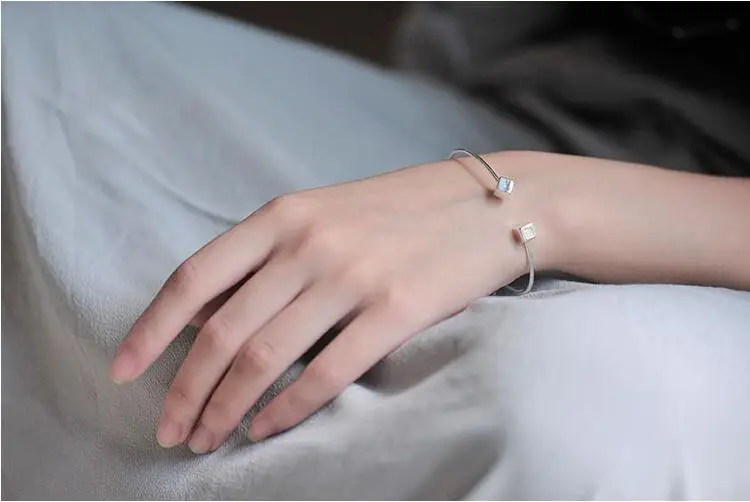 Victoria’s Vogue New Fashion 925 Sterling Silver Jewelry Square Love Lettering Accessories Female Personality Opening Bracelet