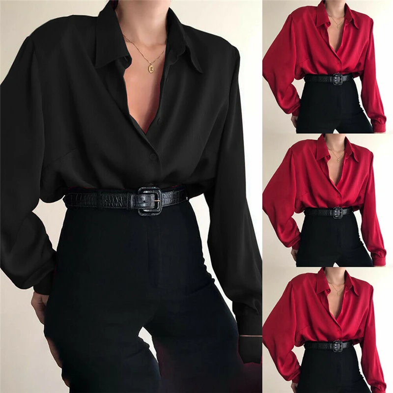 victoria’s vogue New Fashion Autumn Women Blouse Shirt Lapel Long Sleeve Solid Black Red Ladies Blouse For Women Female Top Clothing