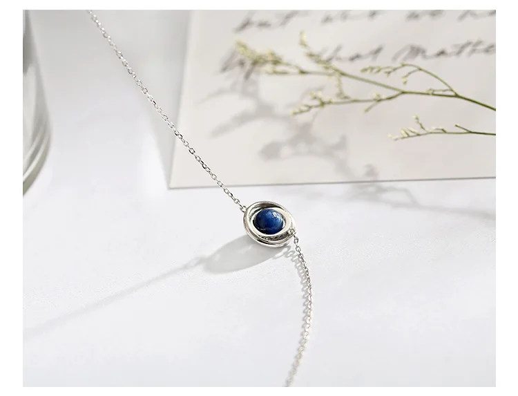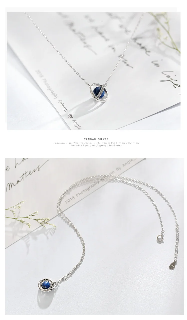 Victoria’s Vogue New Fashion Beautiful Blue Galaxy Planet Surround 925 Sterling Silver Jewelry Personality Ball Crystal Exquisite Necklaces
