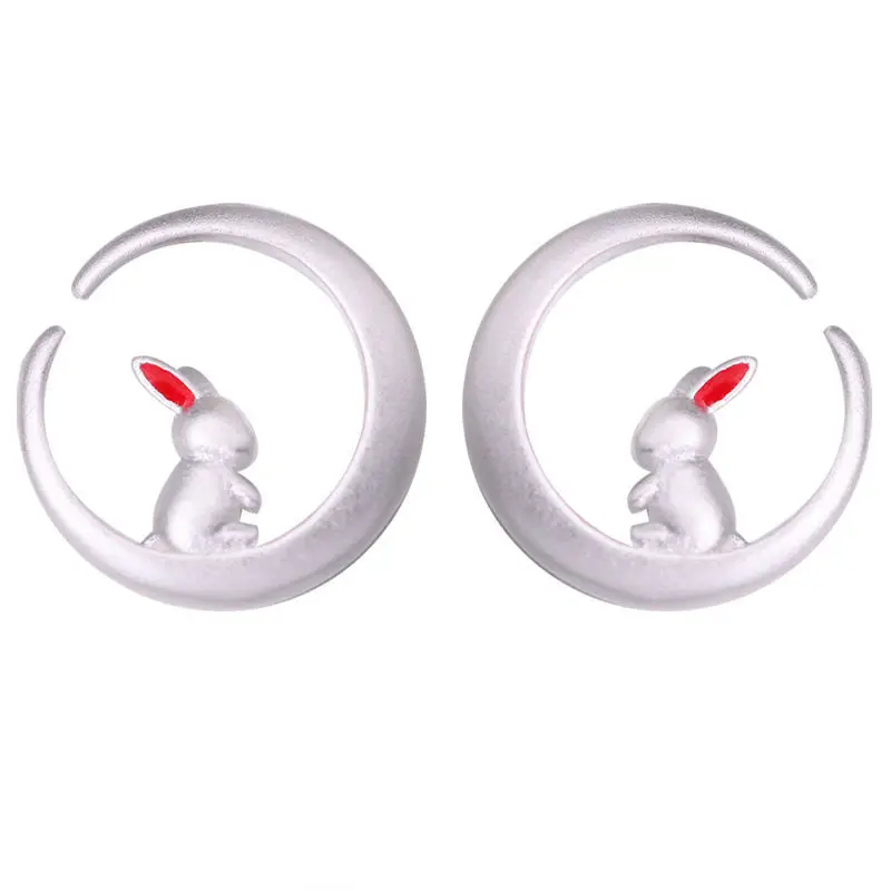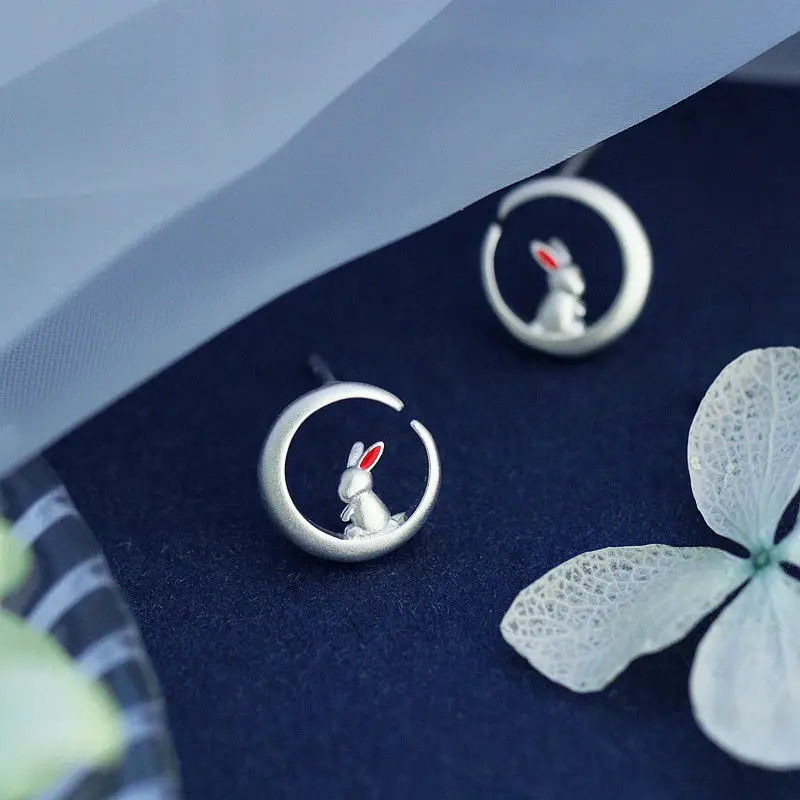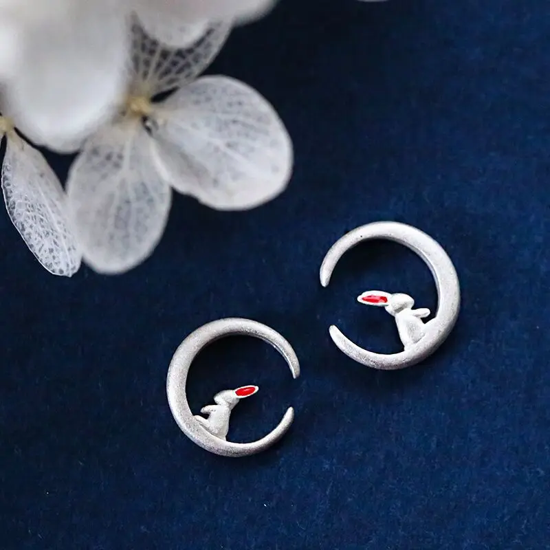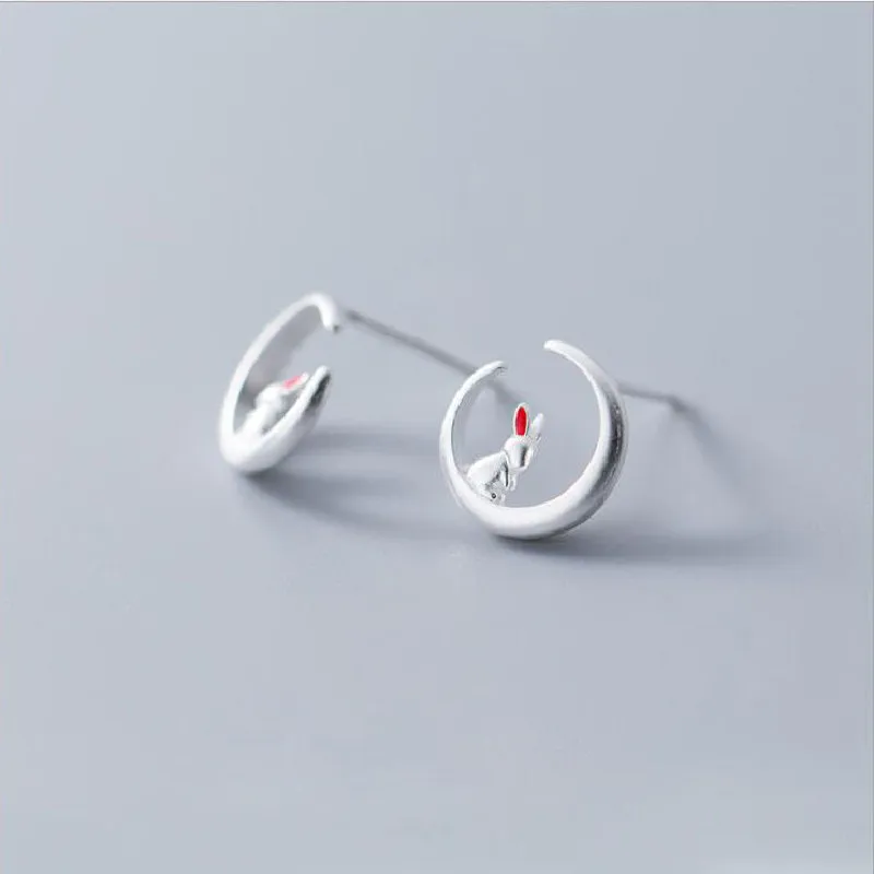 victoria’s vogue New Fashion Beautiful Moon And Jade Rabbit 925 Sterling Silver Jewelry Creative Sweet Animal Exquisite Stud Earrings
