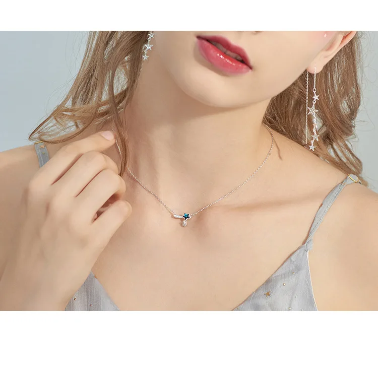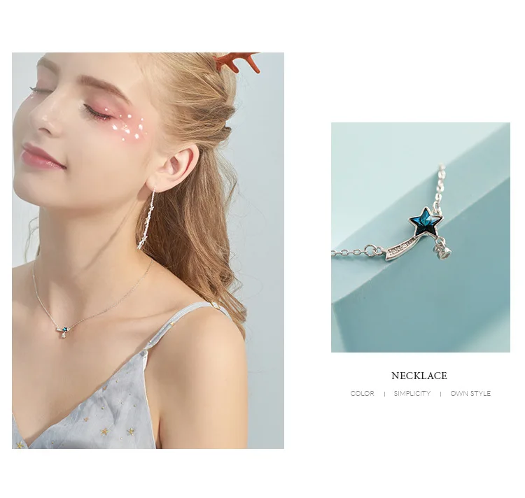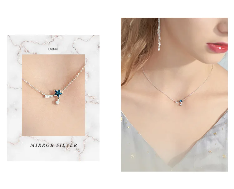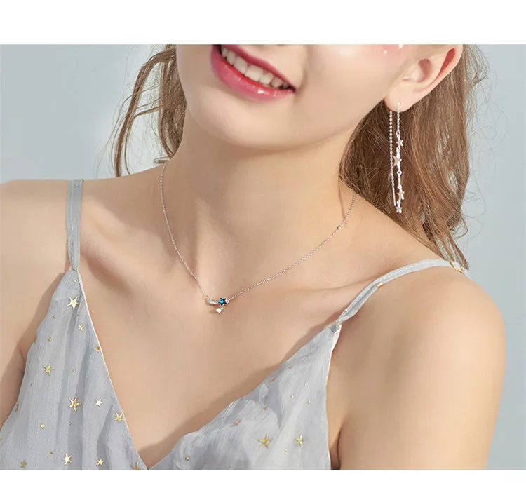 Victoria’s Vogue New Fashion Blue Aurora Crystal Star Facet Meteor Tail 925 Sterling Silver Jewerlry Simple Star Clavicle Chain Necklaces