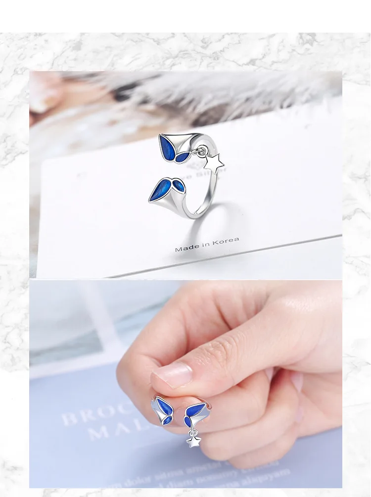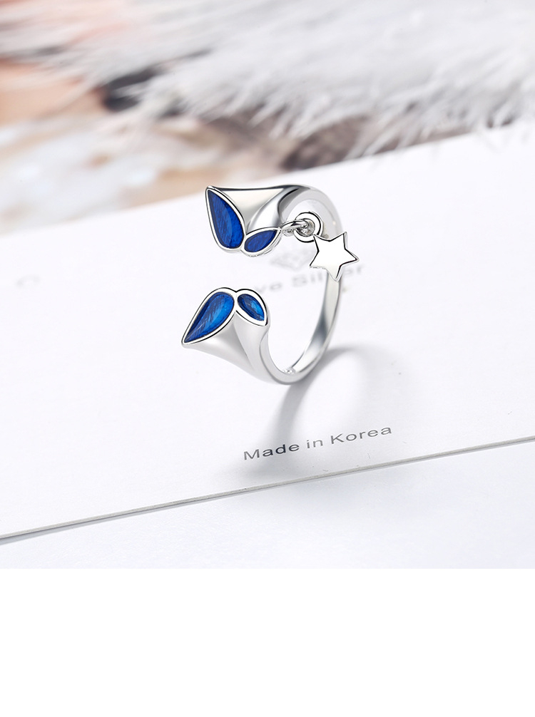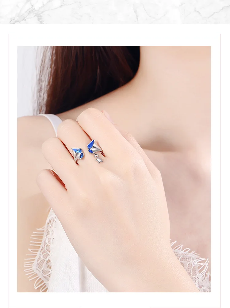 victoria’s vogue New Fashion Blue Butterfly 925 Sterling Silver Jewelry Personality Sweet Star Exquisite Popular Opening Rings