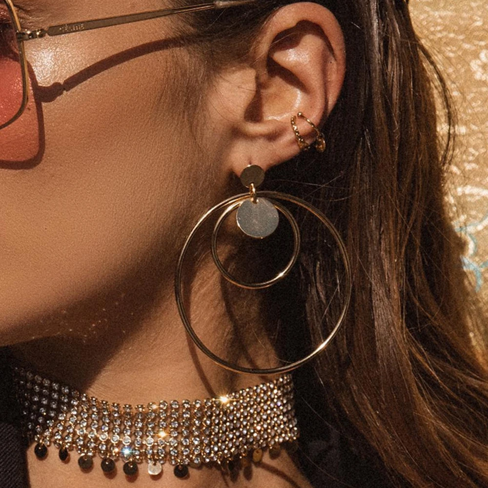 Victoria’s Vogue New Fashion Bohemian Gold Silver Color Big Circle Round Hoop Earrings For Woman Boho Sequins Earrings Party Jewelry Accessories