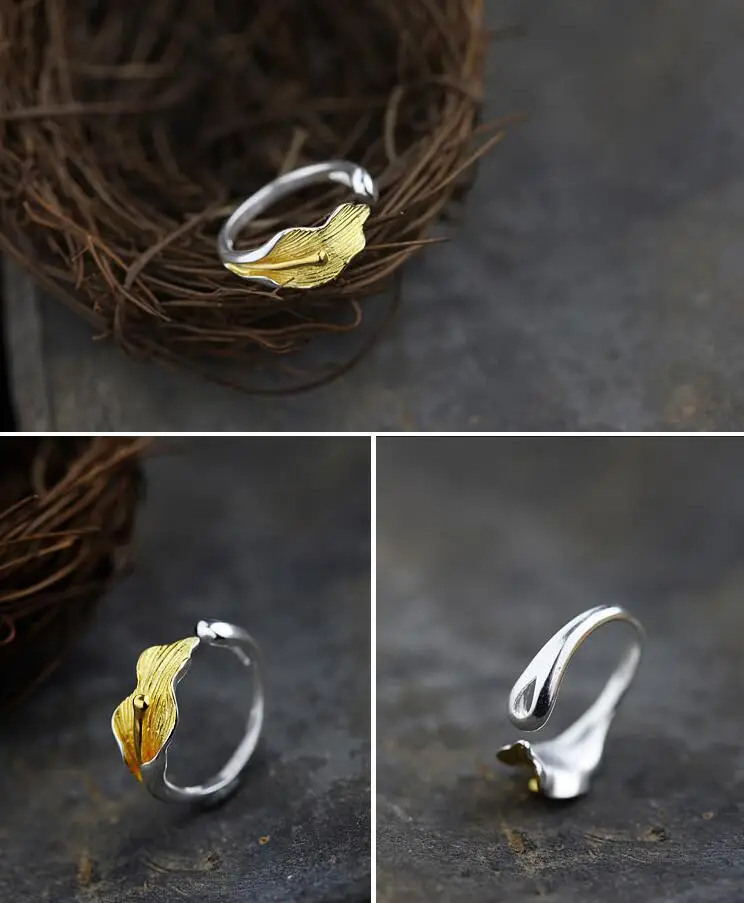 victoria’s vogue New Fashion Calla Lotus Popular Flower 925 Sterling Silver Jewelry Not Allergic Literary Exquisite Women Opening Rings