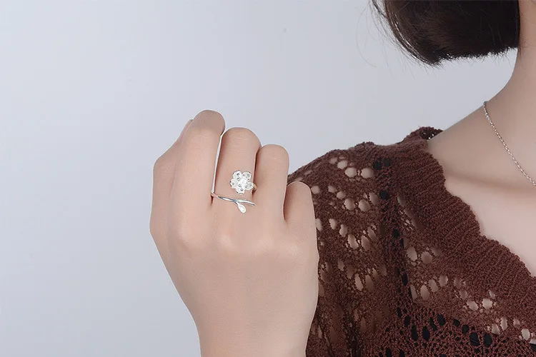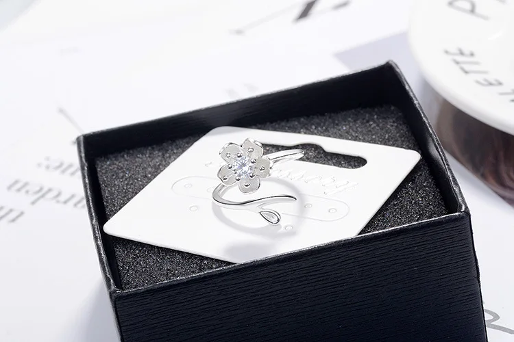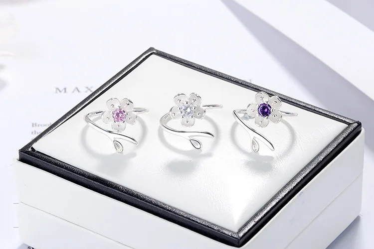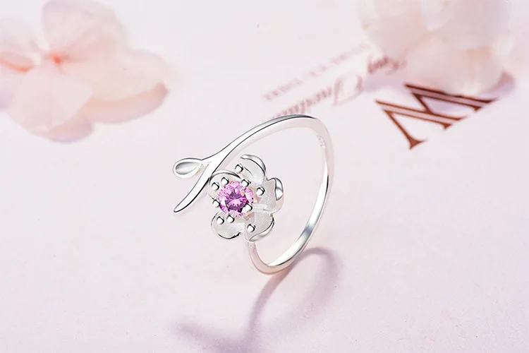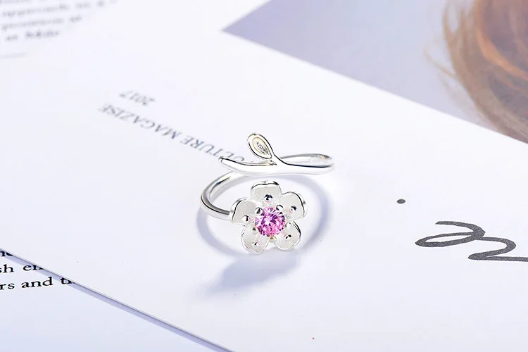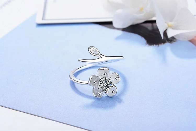 Victoria’s Vogue New Fashion Cherry Blossom 925 Sterling Silver Jewelry Cute Temperament Flower Crystal Simple Exquisite Opening Rings