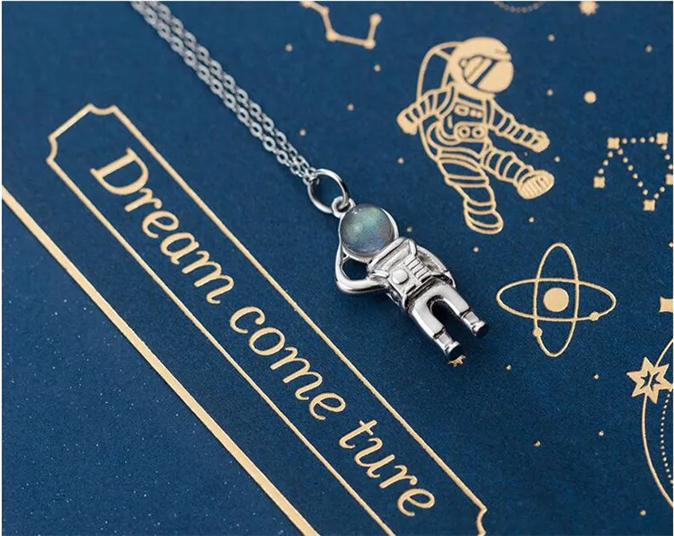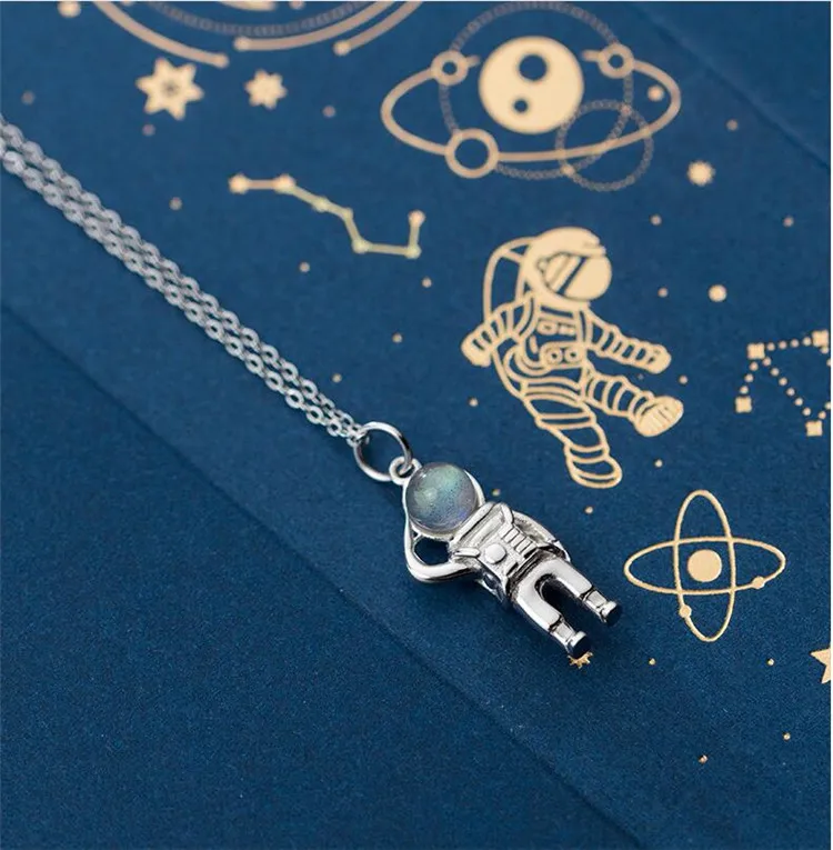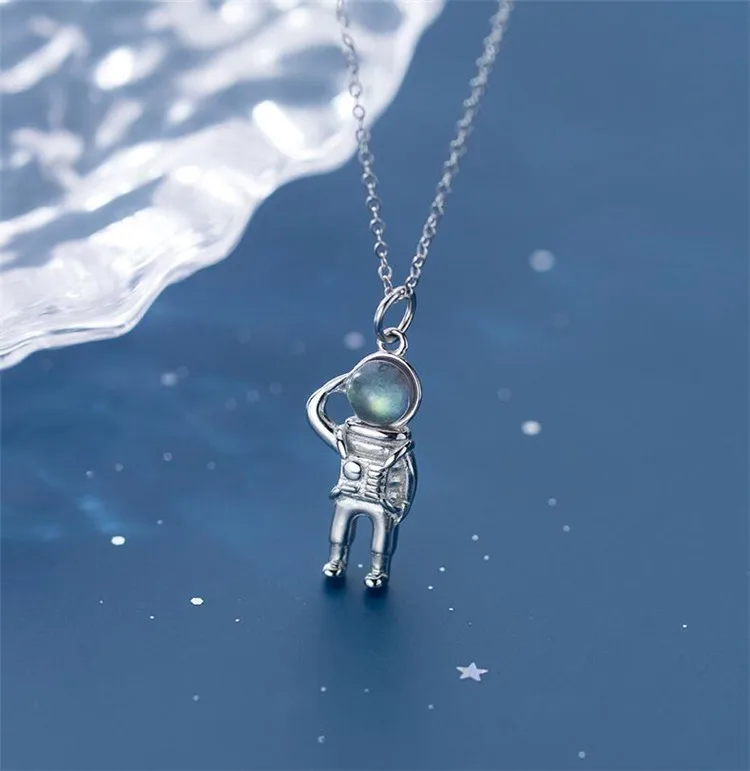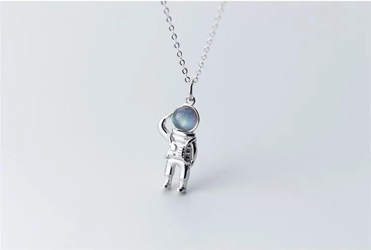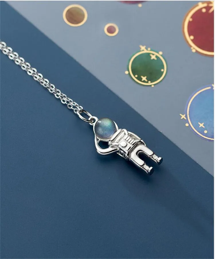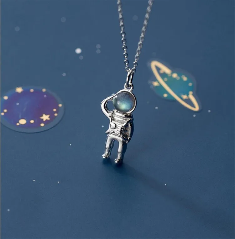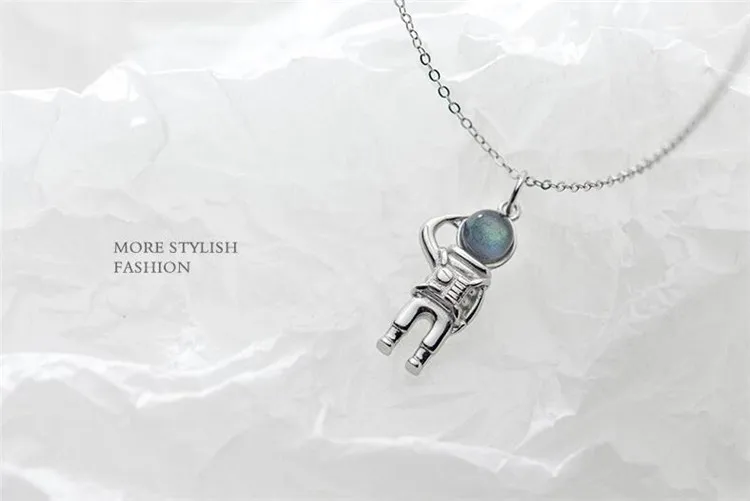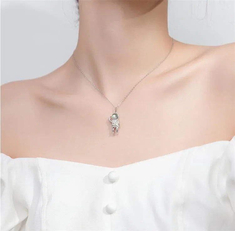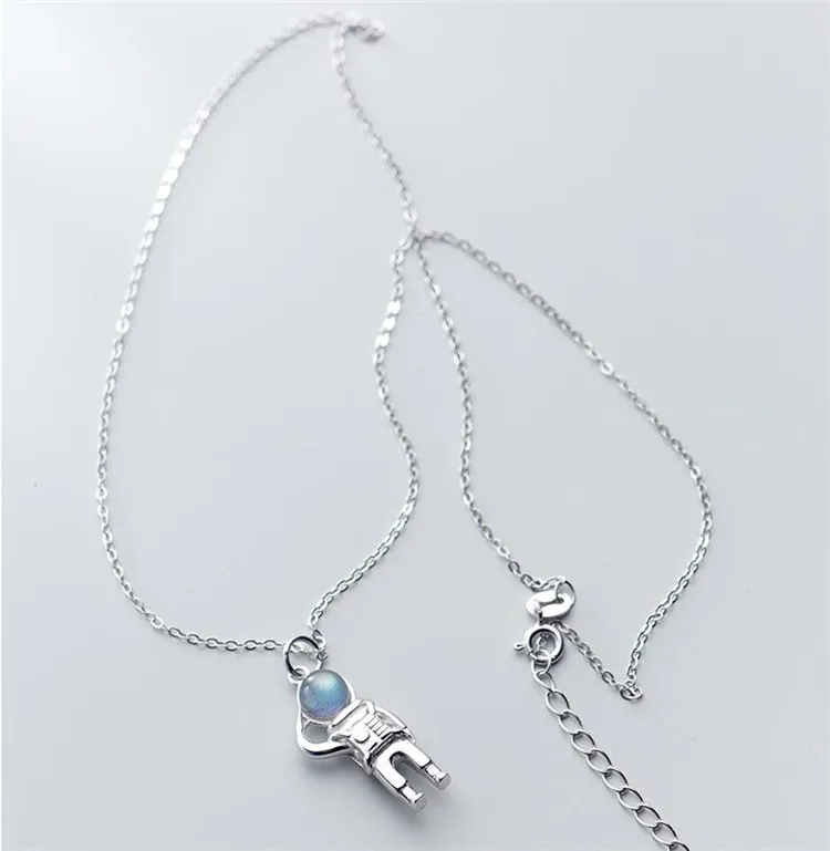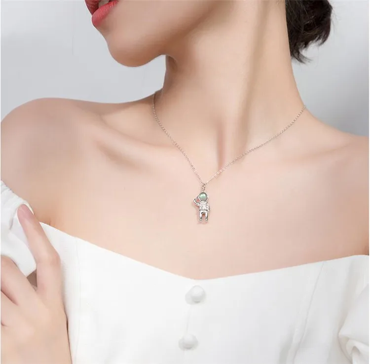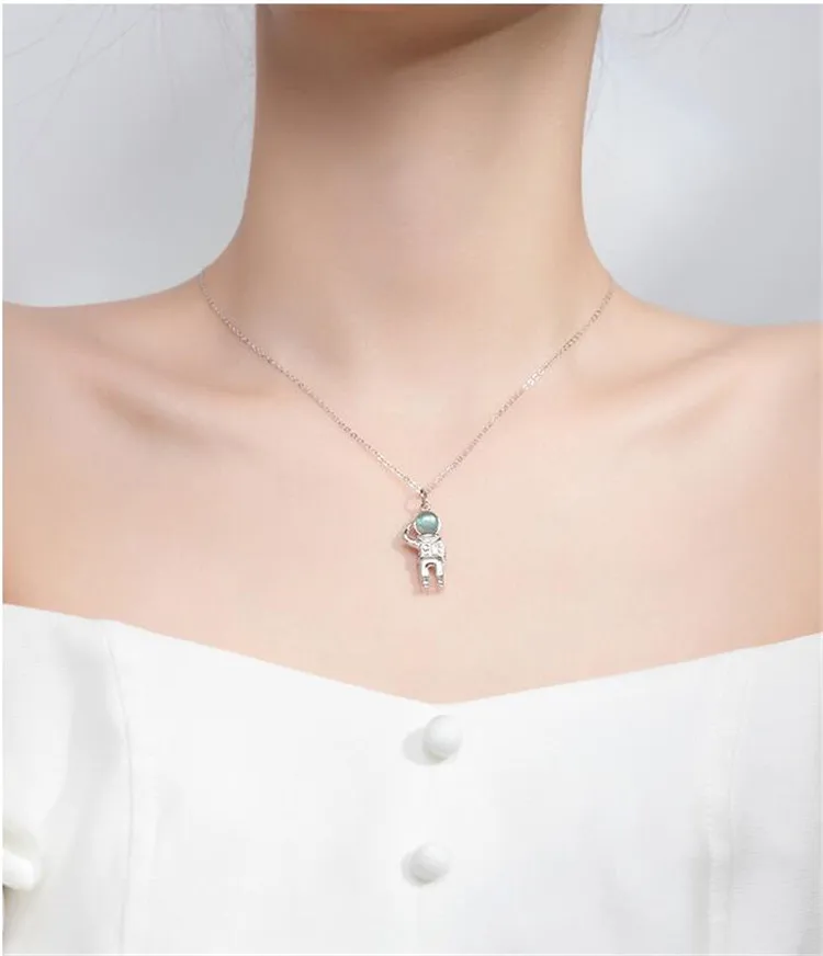 Victoria’s Vogue New Fashion Creative Astronaut 925 Sterling Silver Jewelry Sweet Temperament Popular Clavicle Chain Pendant Necklaces