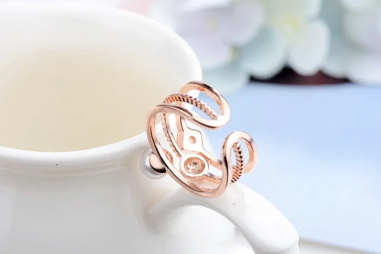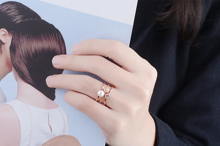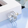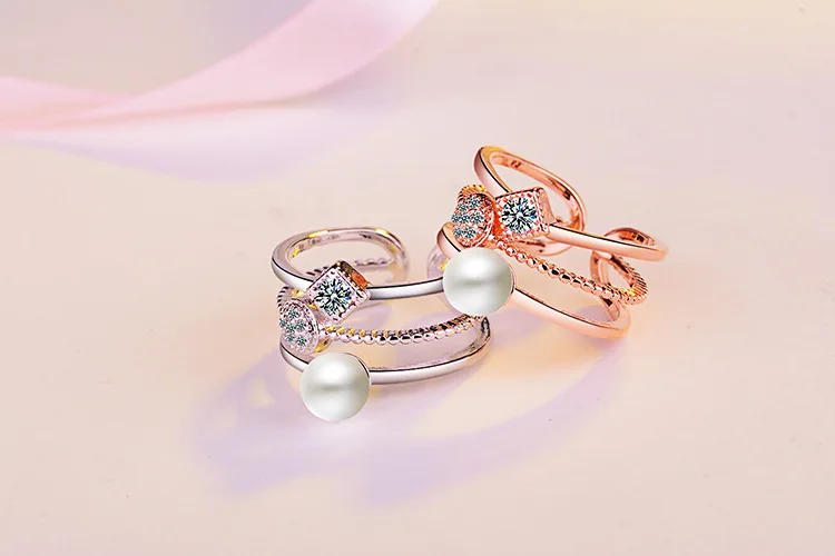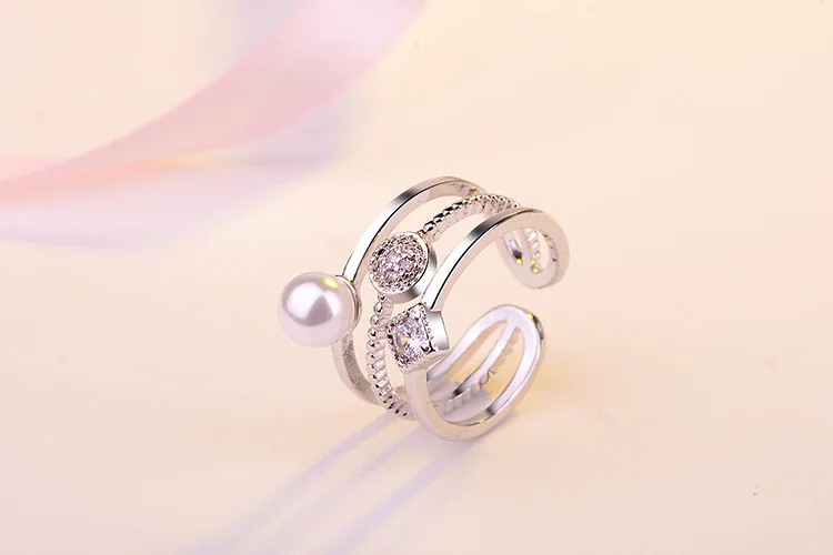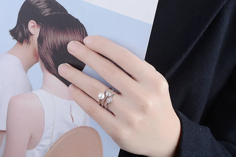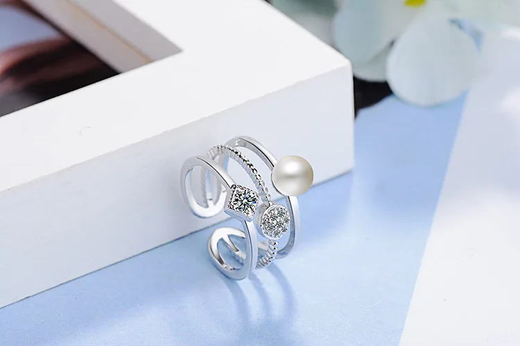 Victoria’s Vogue New Fashion Creative Beautiful Double-Layer Geometric 925 Sterling Silver Jewelry Square Crystal And Pearl Opening Rings