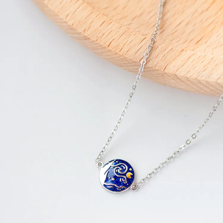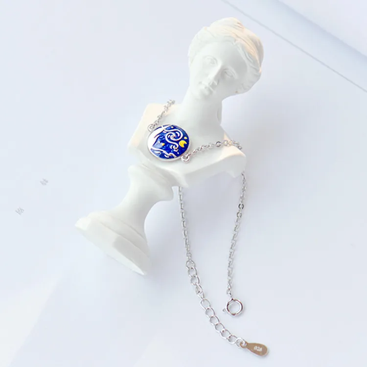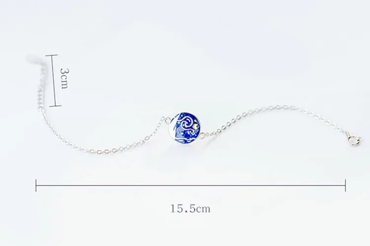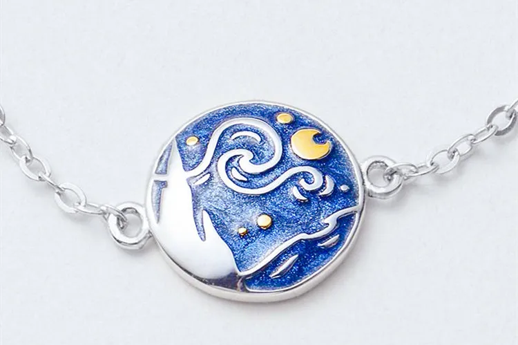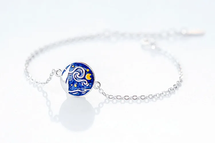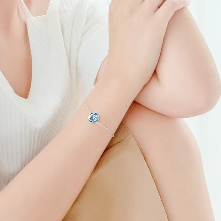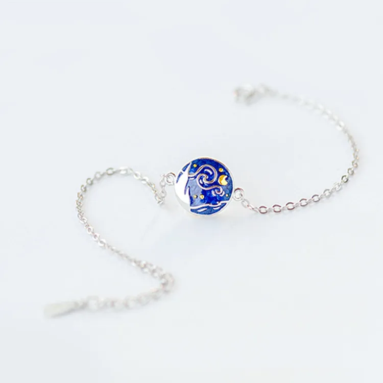 Victoria’s Vogue New Fashion Creative Van Gogh Starry Women Beautiful 925 Sterling Silver Jewelry Temperament Epoxy Blue Bracelets
