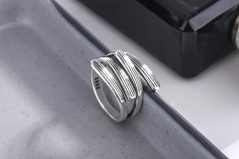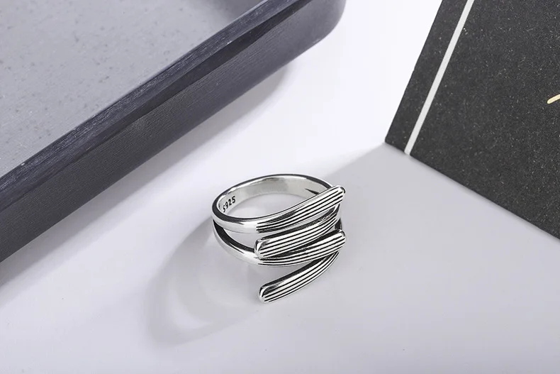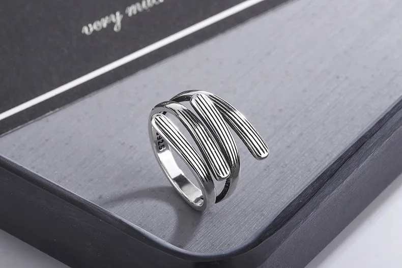 victoria’s vogue New Fashion Distressed Four-horizontal Cross 925 Sterling Silver Jewelry Branches Popular Simple Opening Rings