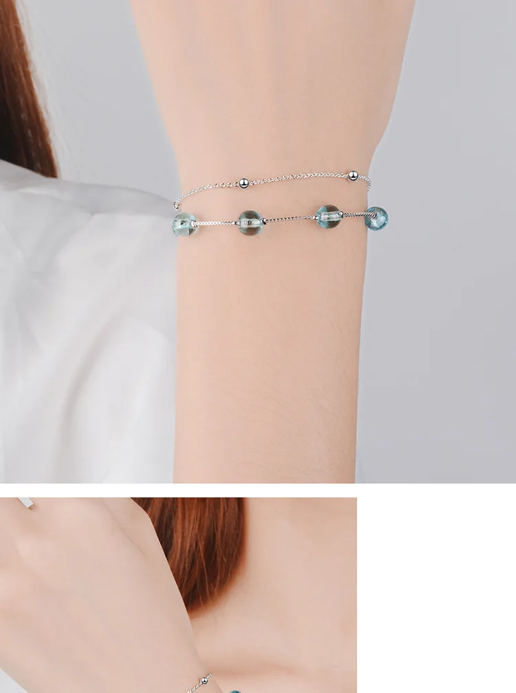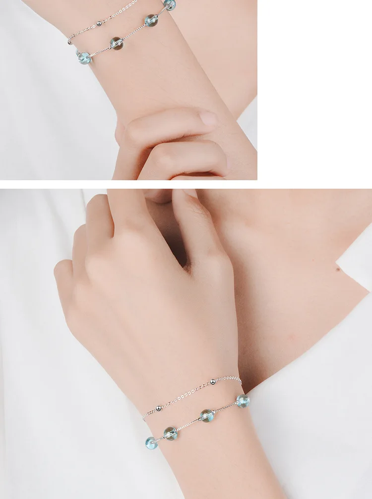 Victoria’s Vogue New Fashion Double Layer Blue Crystal 925 Sterling Silver Jewelry Personality Sweet Transfer Beads Bracelets