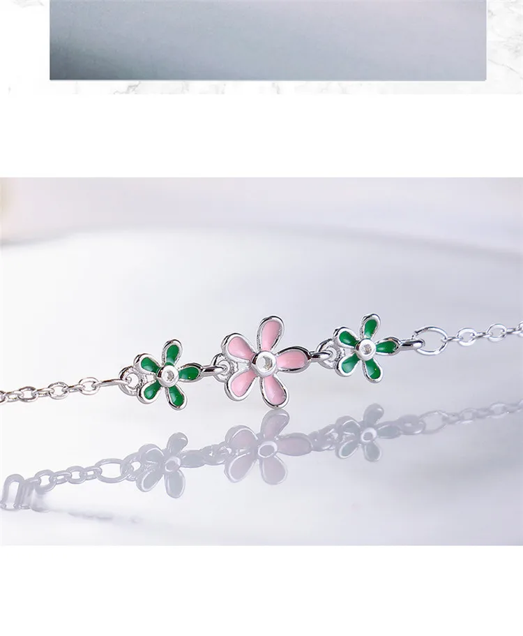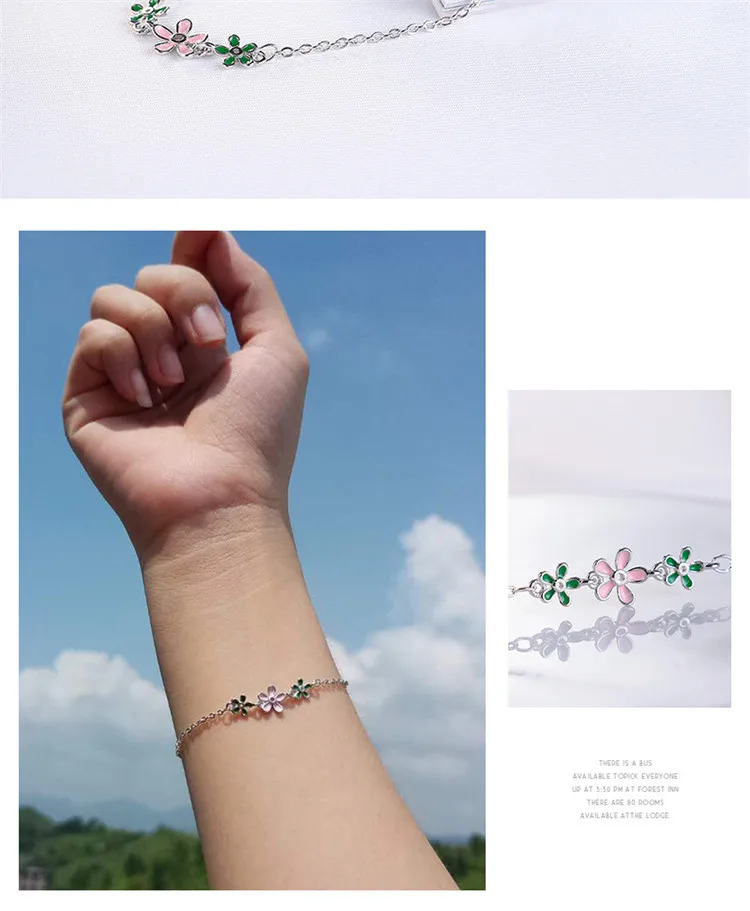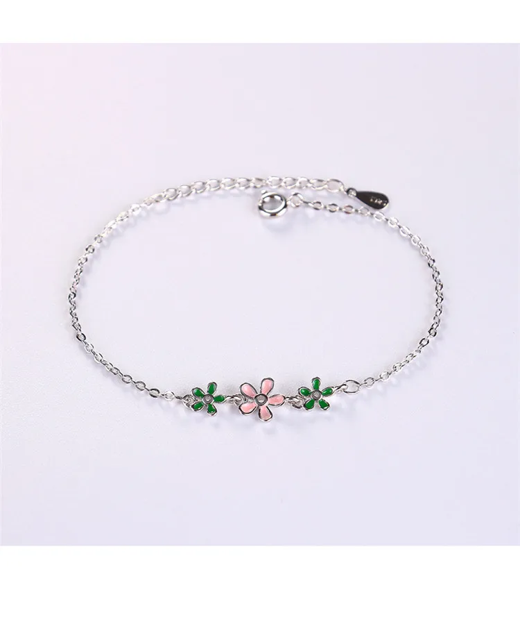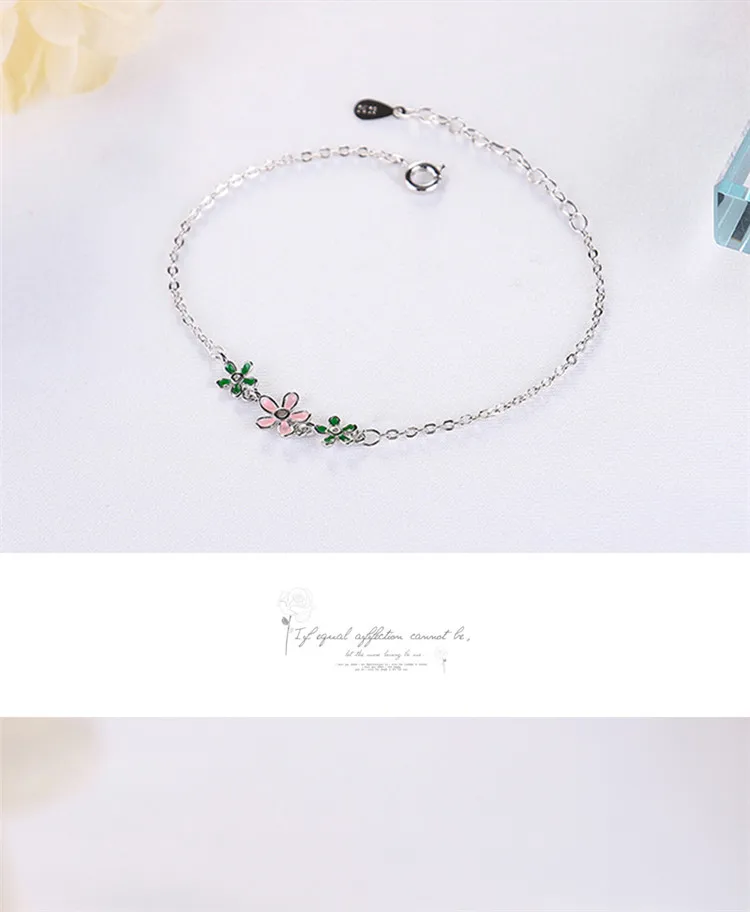 Victoria’s Vogue New Fashion Drip Glaze Epoxy Beautiful 925 Sterling Silver Jewelry Leaves Flower Daisy Sweet Female Bracelets