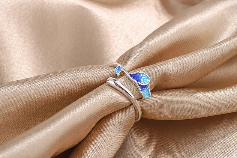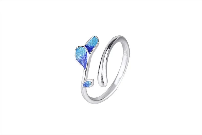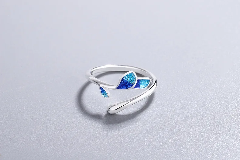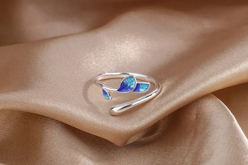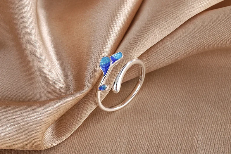 victoria’s vogue New Fashion Enamel Branch Epoxy 925 Sterling Silver Jewelry Ancient Style Art Burning Blue Flowers Opening Rings
